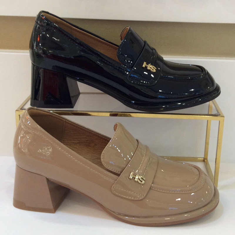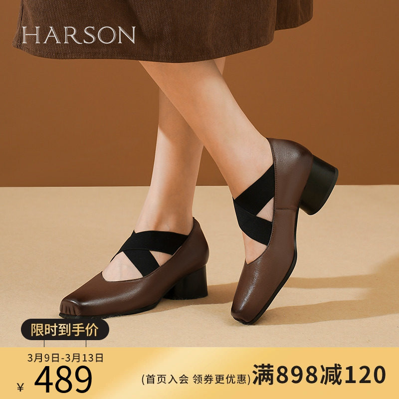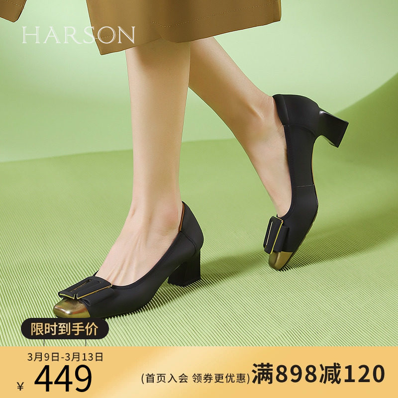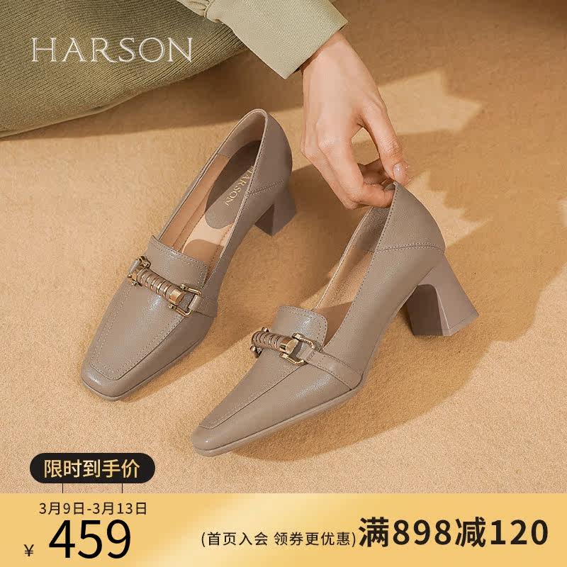 哈森HARSON正品2023新款春秋季高粗跟圆头百搭女乐福单鞋HL234101
