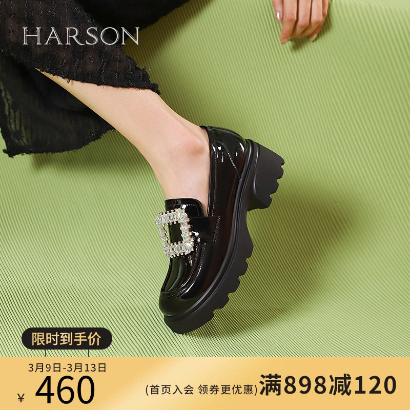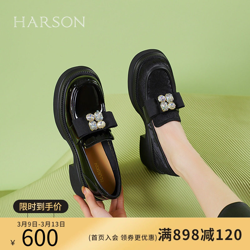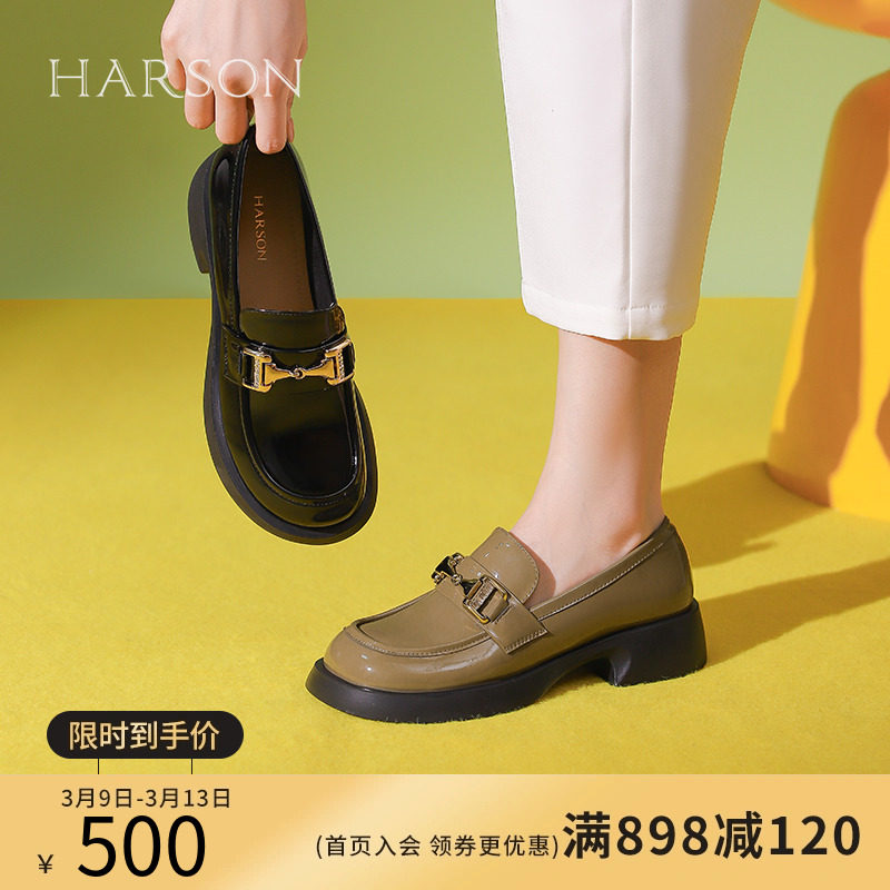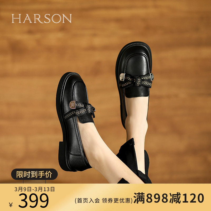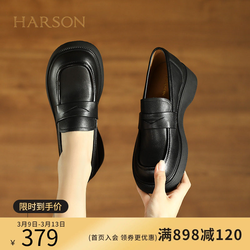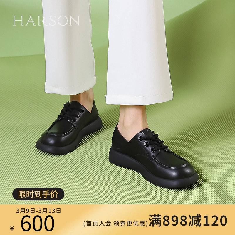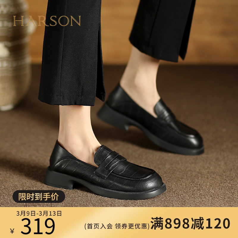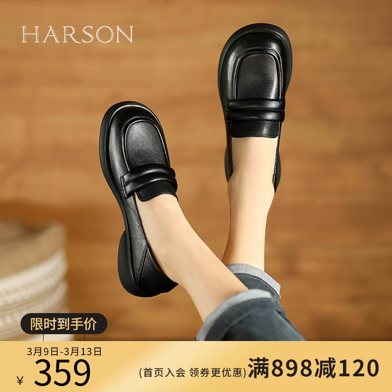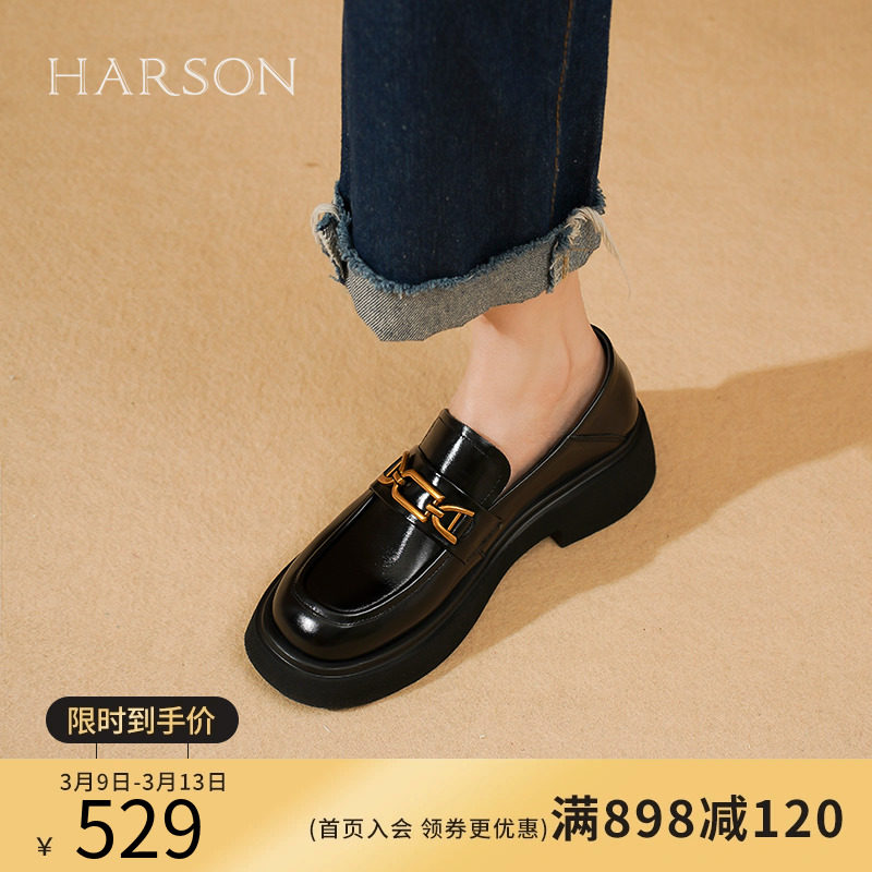 哈森乐福鞋女2024春季新款圆头厚底百搭小皮鞋学院风单鞋HS242501