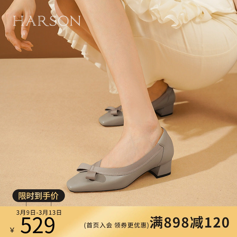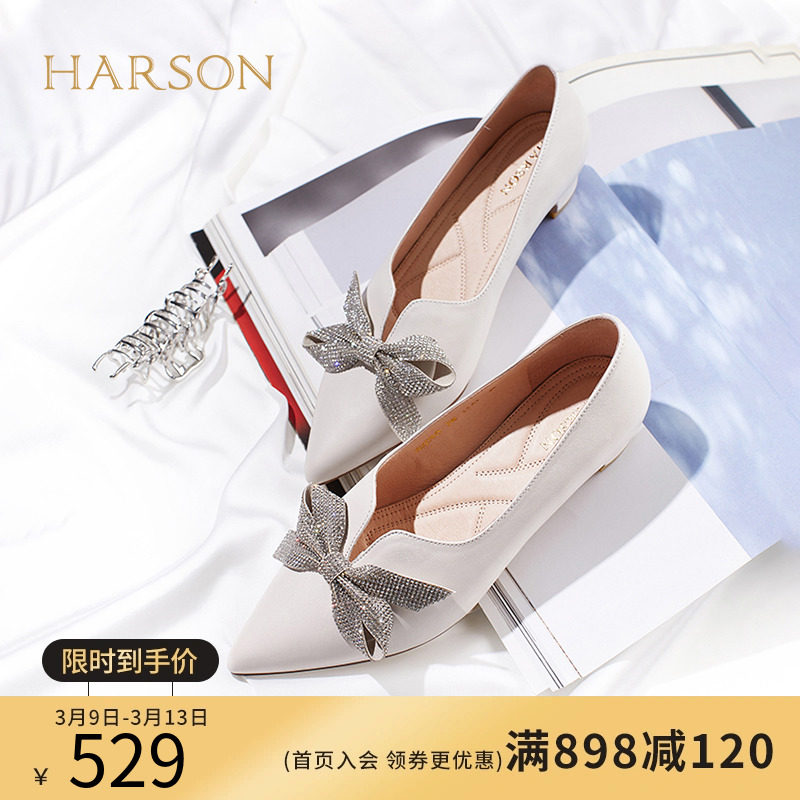 【门店直发】哈森秋季新品蝴蝶结单鞋浅口尖头皮鞋HL237908