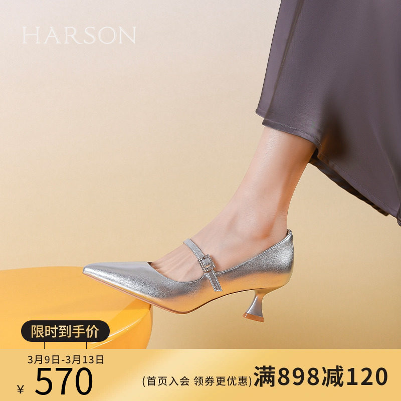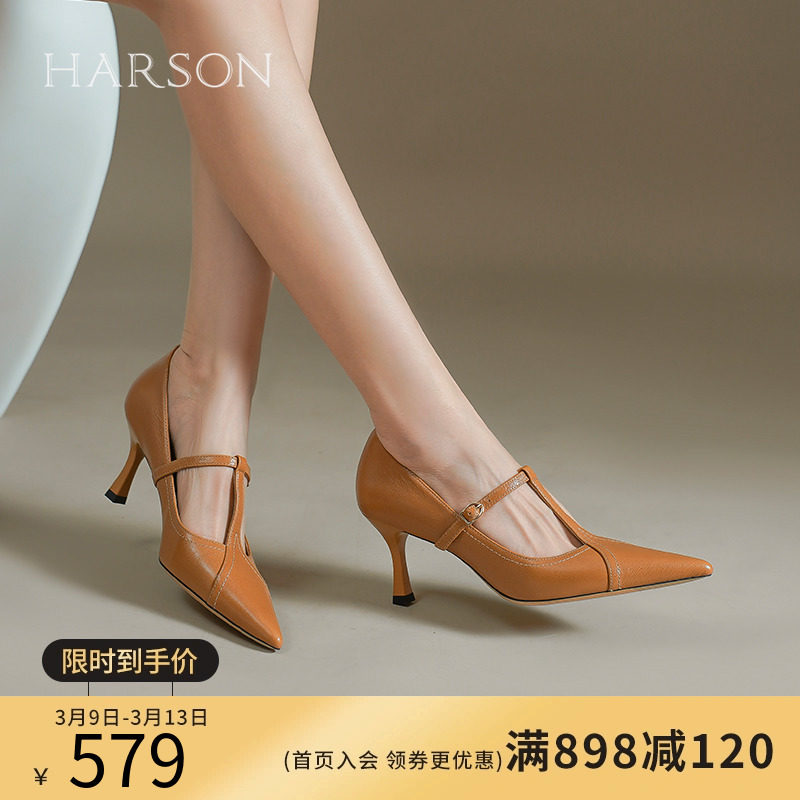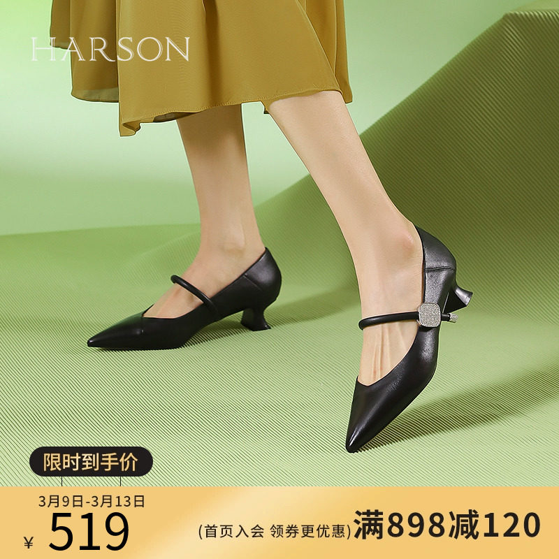 哈森秋季新品尖头细跟玛丽珍单鞋羊皮通勤高跟鞋HWL230120