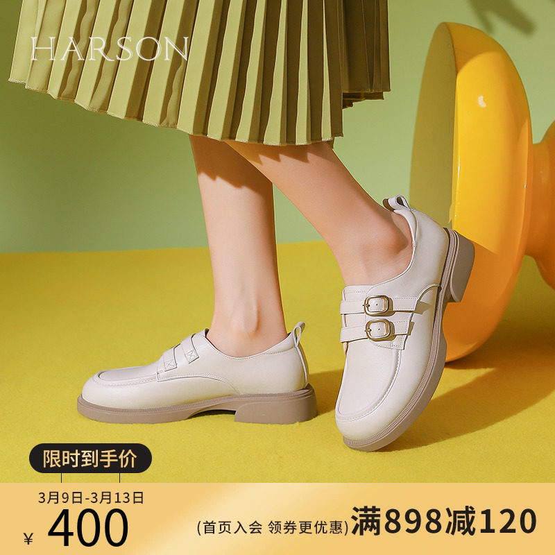 哈森2024年春季新品学院JK乐福鞋方扣单鞋粗跟方头女鞋HWS240213