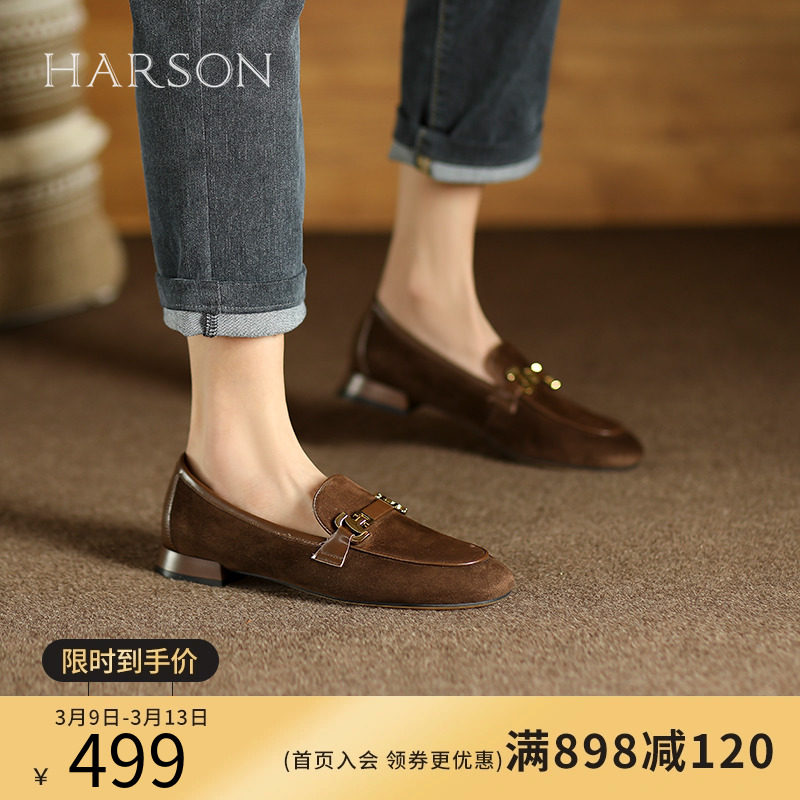 哈森英伦风小皮鞋新款休闲深口单鞋羊皮乐福鞋春秋女鞋HS237705