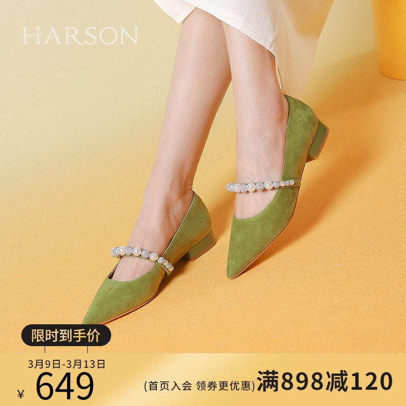 哈森玛丽珍女鞋2024春季新款尖头法式小香风珍珠单鞋HWS240121