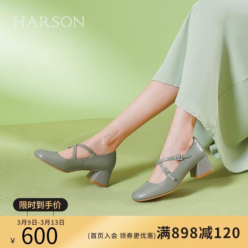 哈森单鞋女2024春季新款温柔交叉拌带粗跟玛丽珍公主皮鞋HS242509