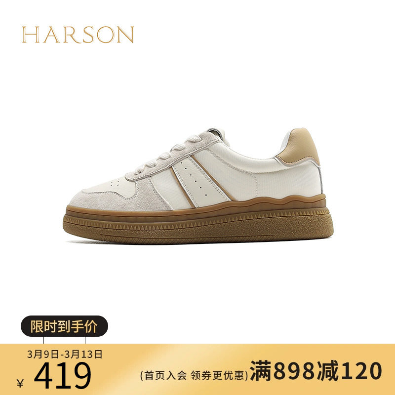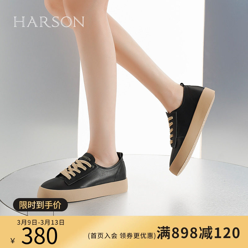 哈森HARSON正品2024新款春秋季系带百搭内增高休闲女单鞋HC242902