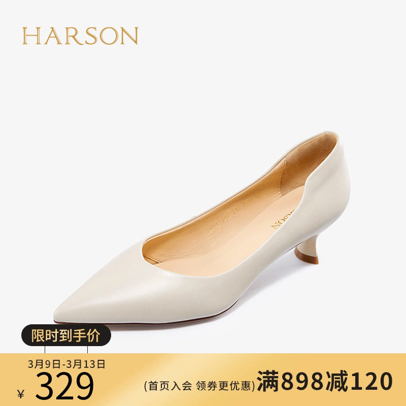 哈森秋季新品素面通勤百搭单鞋羊皮细跟高跟鞋正装HWL230118