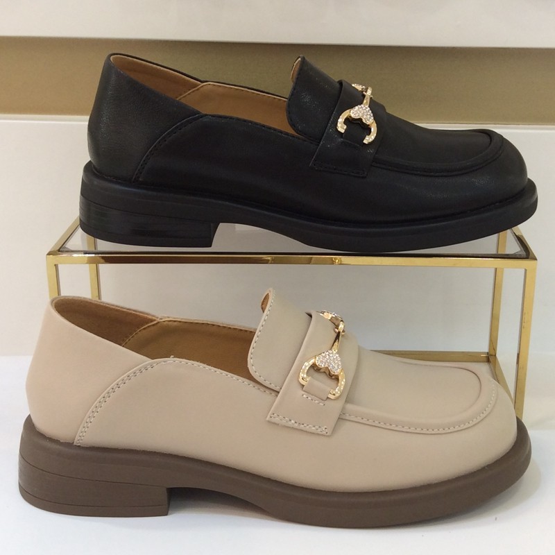 【门店直发】哈森乐福鞋女秋季新品圆头厚底小皮鞋HL237701