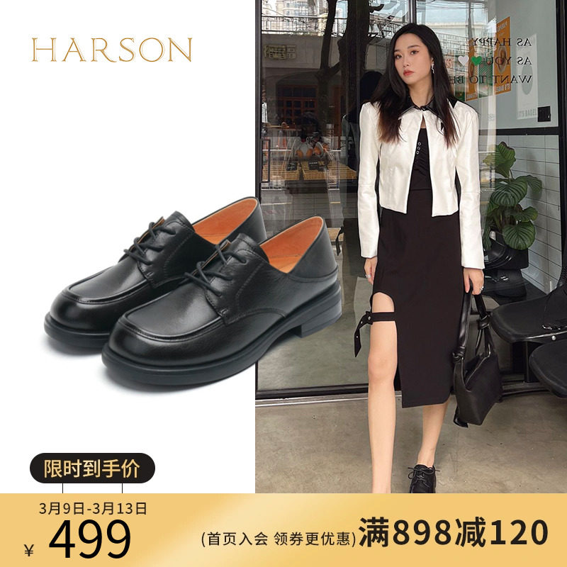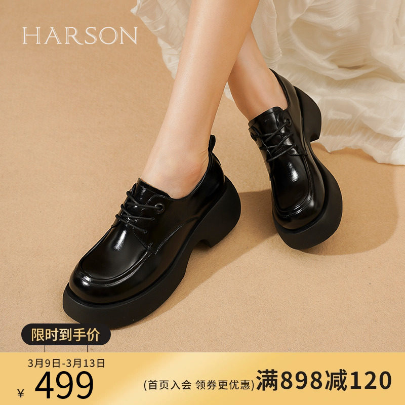 哈森HARSON正品新款HS242517春秋季厚底系带乐福女单皮鞋HL232505