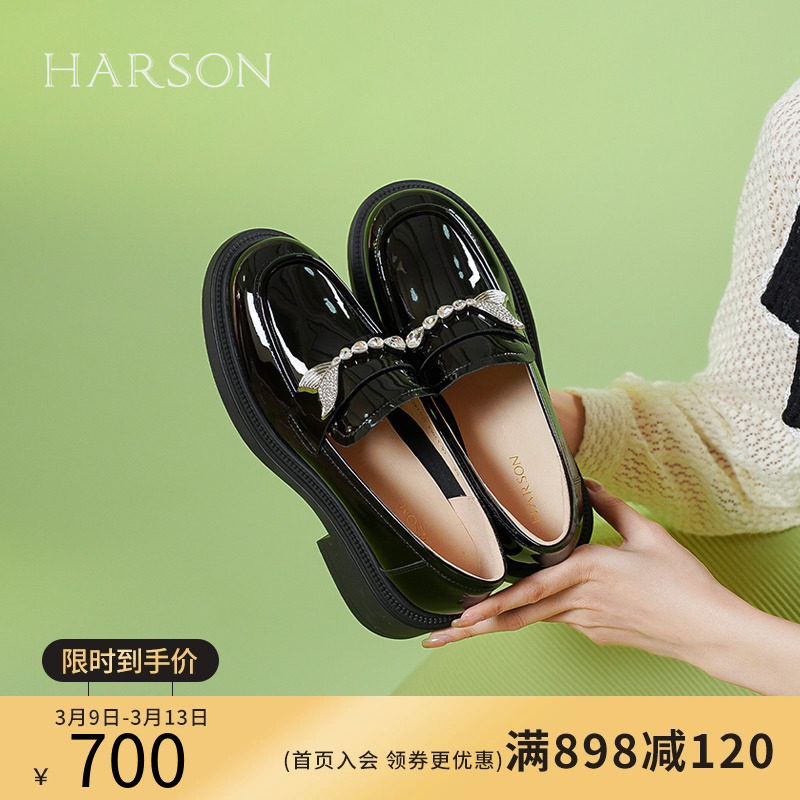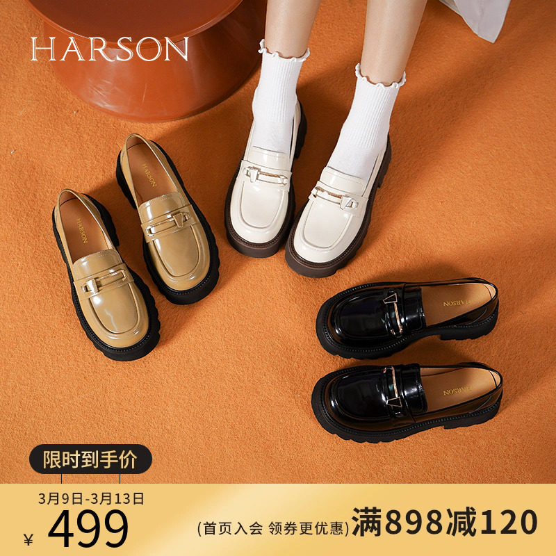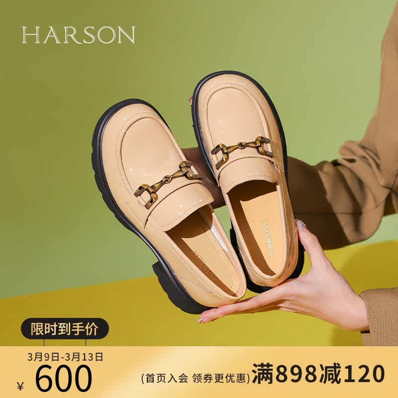 哈森厚底乐福鞋女春季新款厚底学院亮面小皮鞋深口单鞋HWL230163