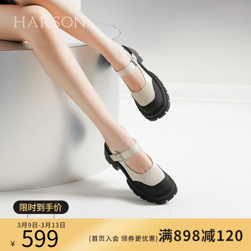 【门店直发】哈森秋季新品厚底玛丽珍学院减龄小皮鞋HL237903