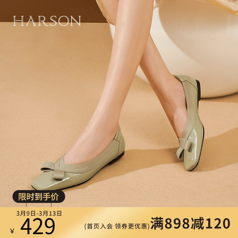 哈森真皮鞋子女新款夏季黑色平底皮鞋秋季法式单鞋HWC230210