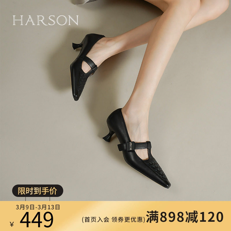 哈森单鞋女秋季新品尖头细跟浅口皮鞋上班通勤女鞋HWL230137