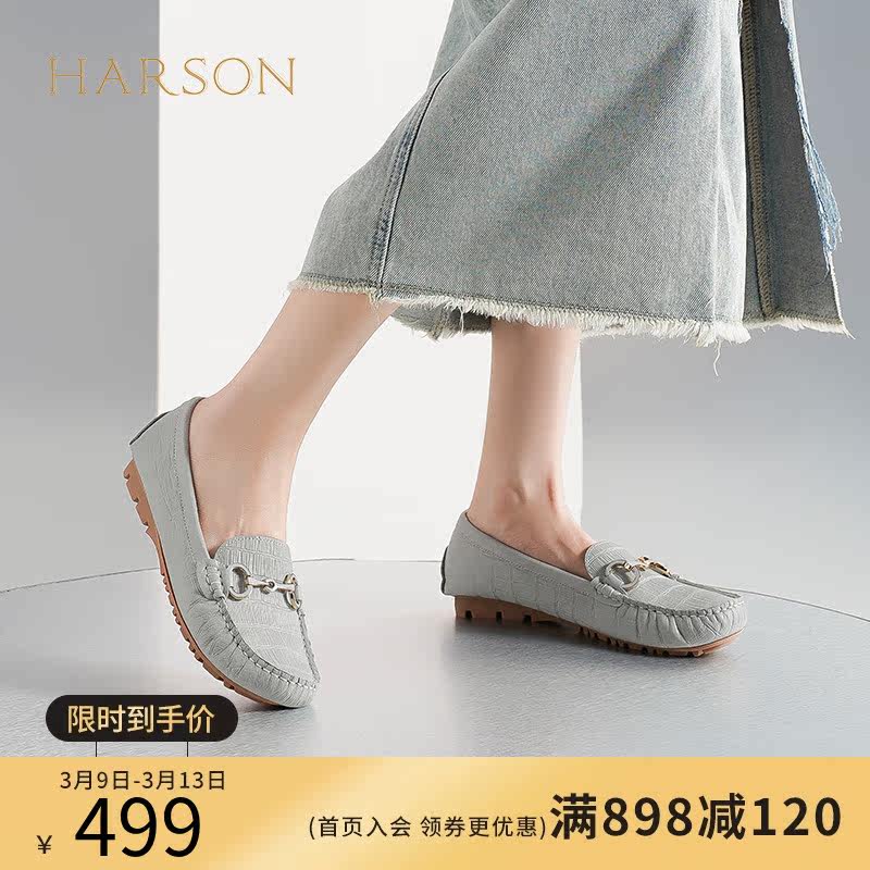 哈森休闲乐福鞋女春季新款羊皮平底单鞋女英伦小皮鞋HWS230127