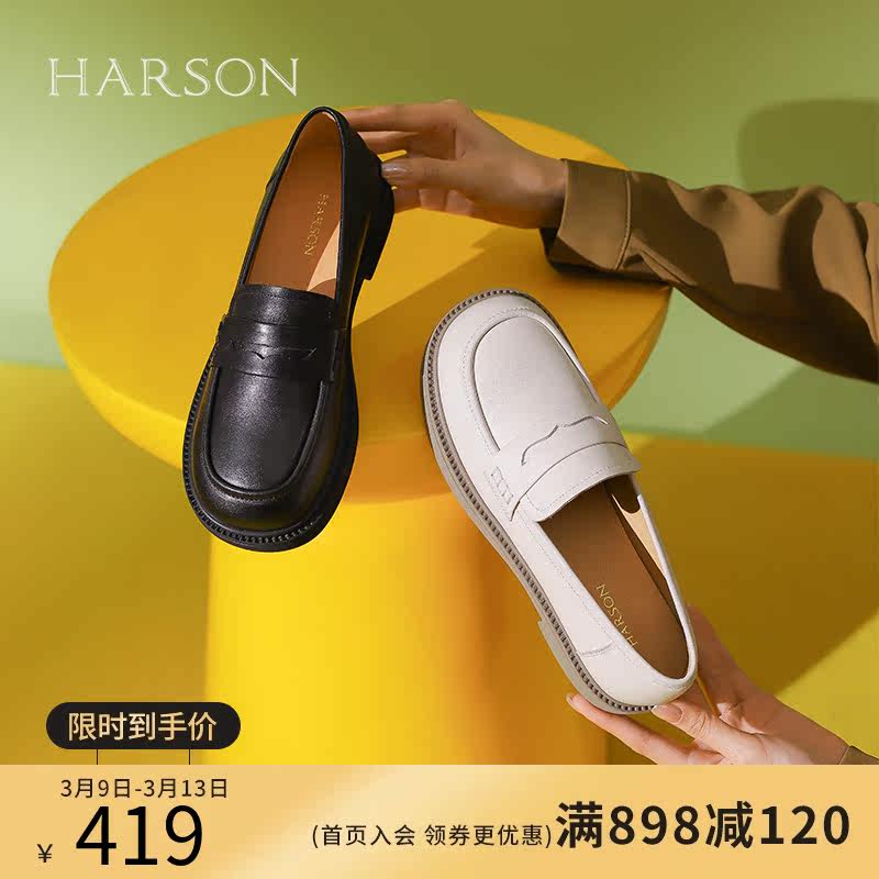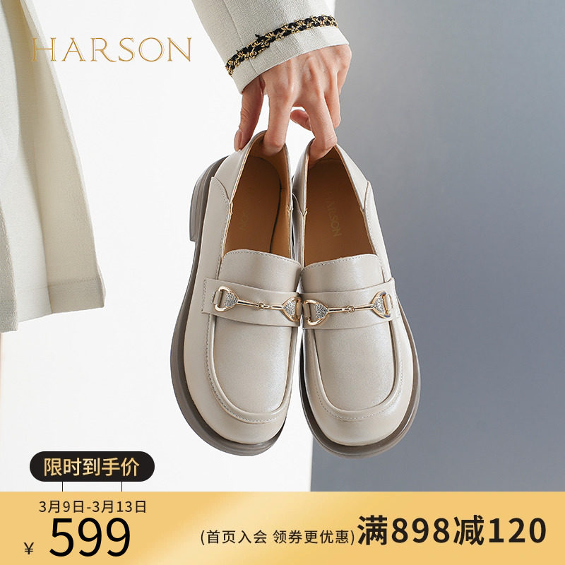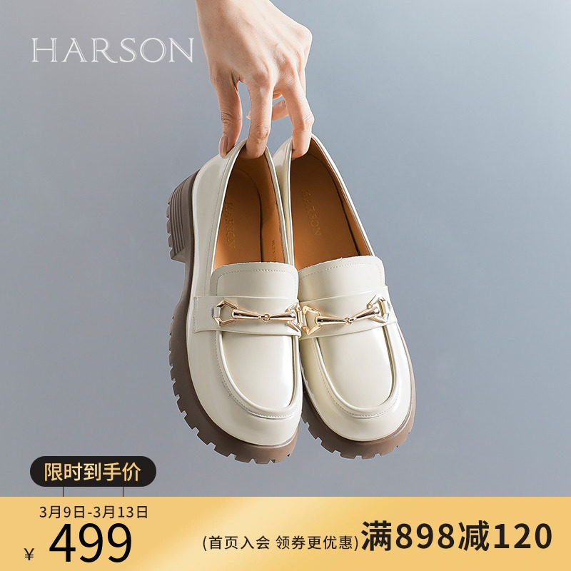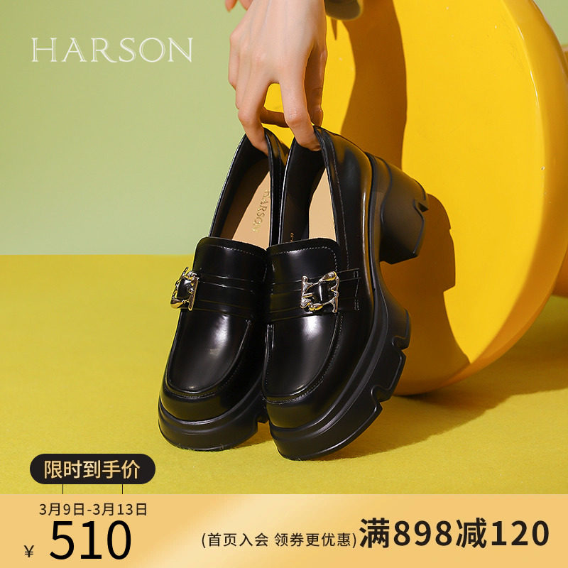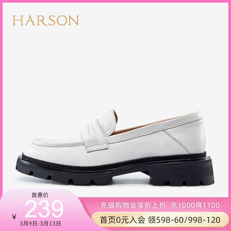 哈森春秋季新款乐福鞋女厚底英伦风休闲小皮鞋深口单鞋HL10632