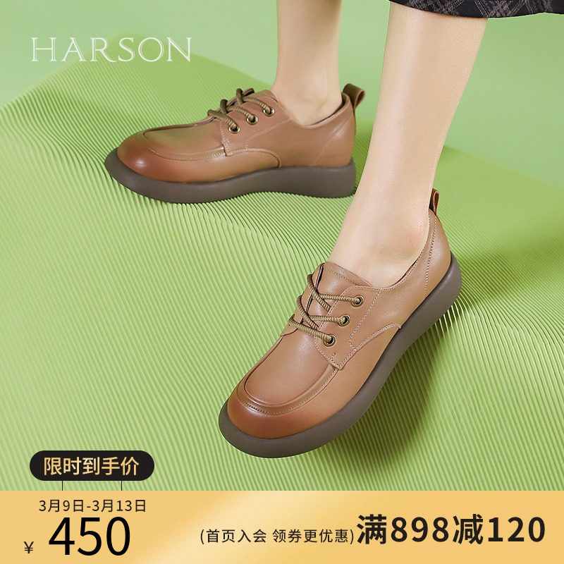 哈森女鞋2024春季新款英伦风休闲小皮鞋系带深口单鞋HWS240218