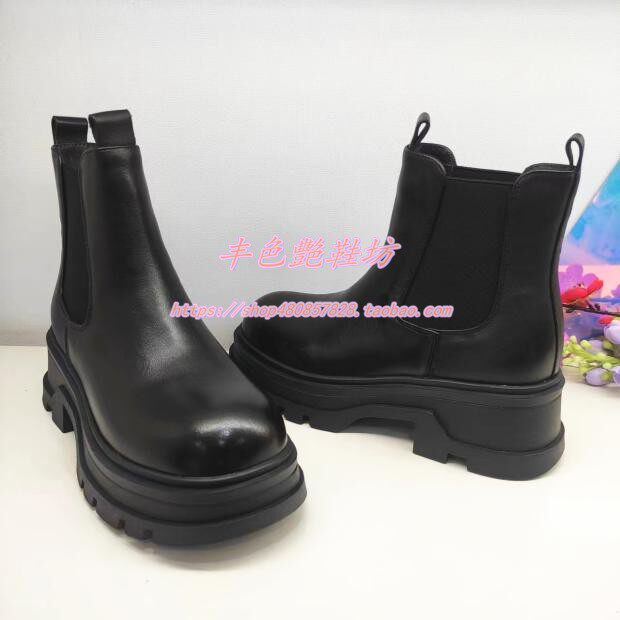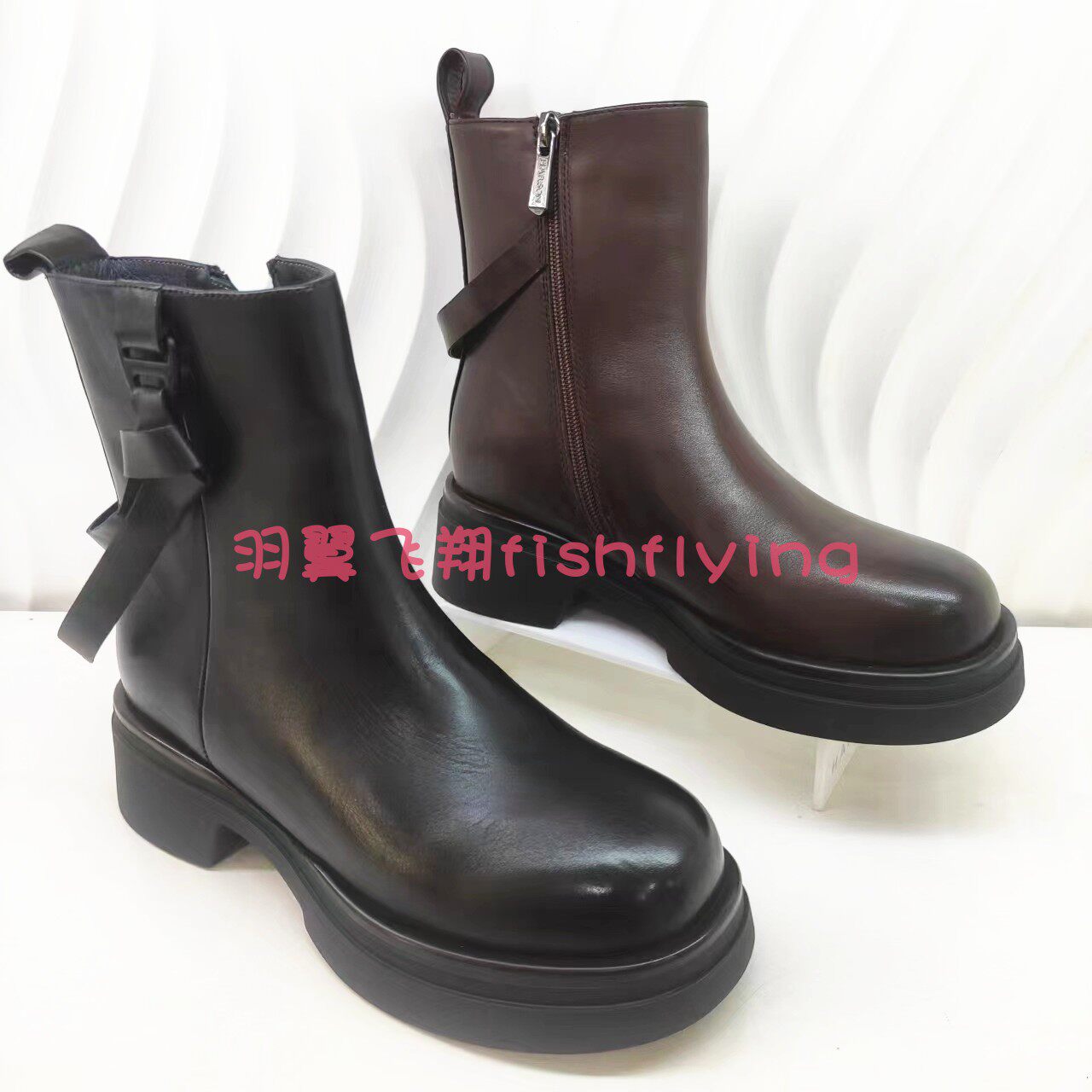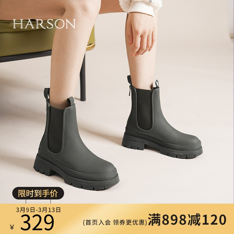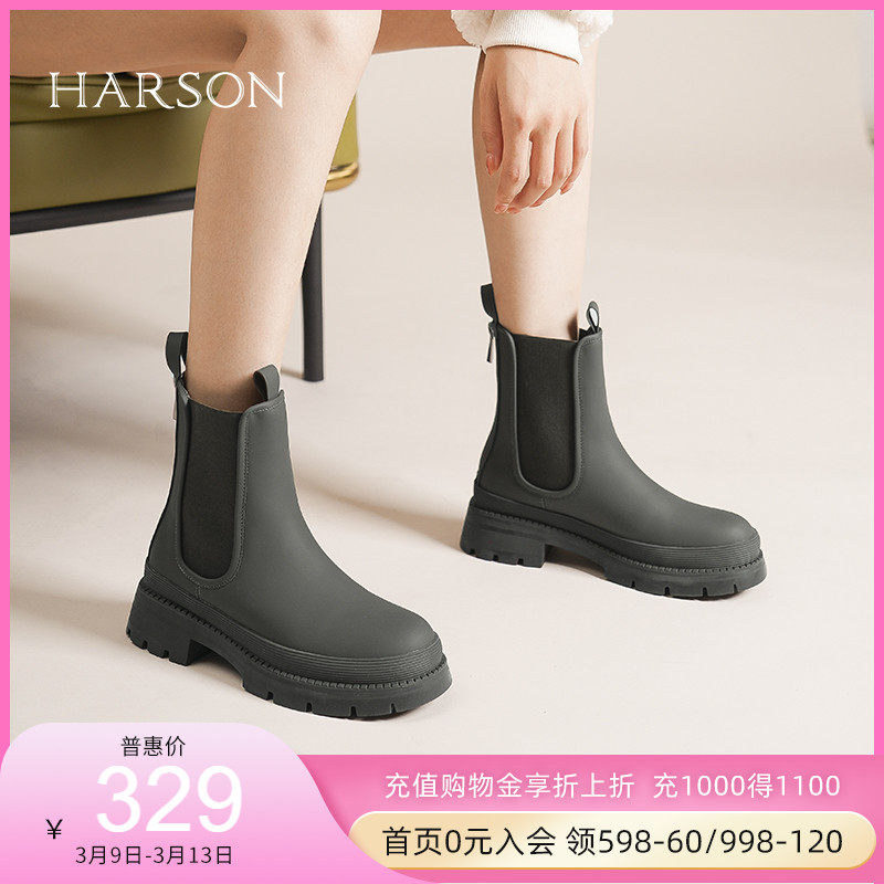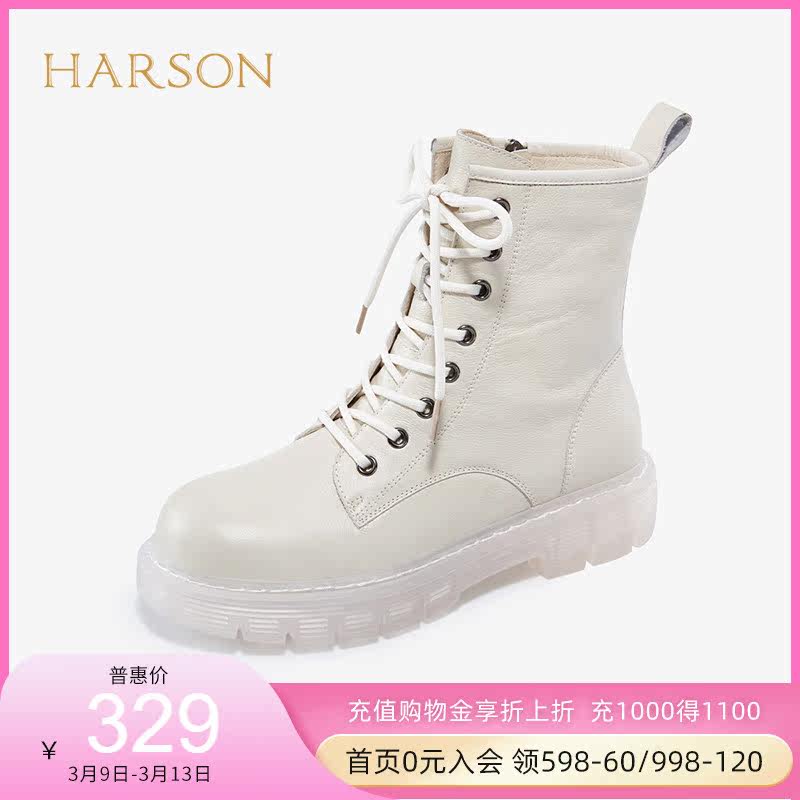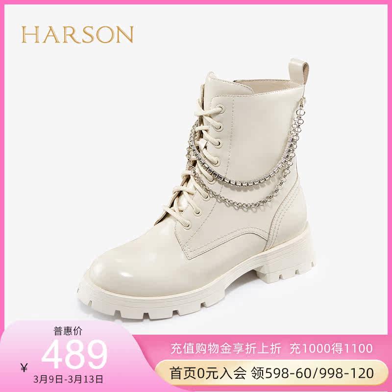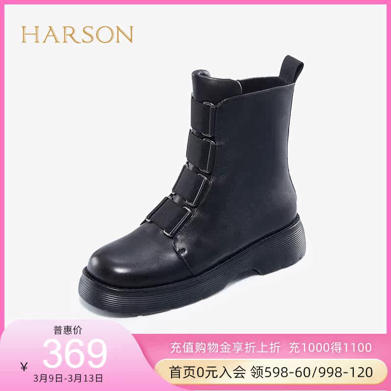 哈森HARSON正品2023冬季新款中跟厚底马丁短筒女皮靴子HA231603