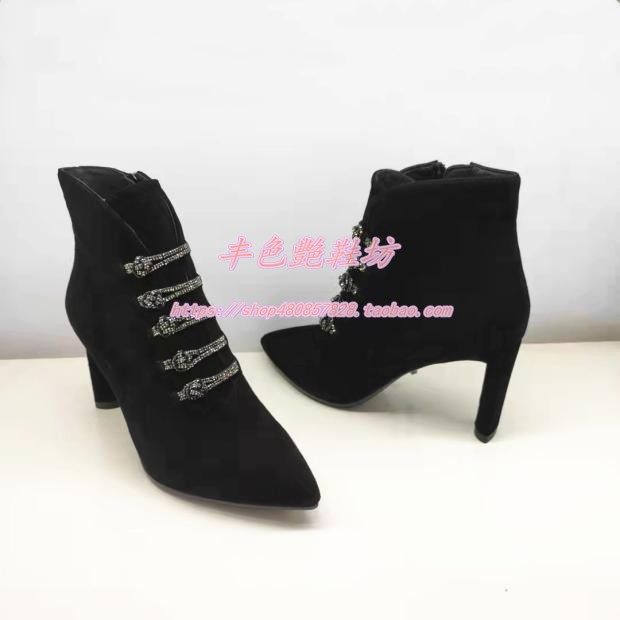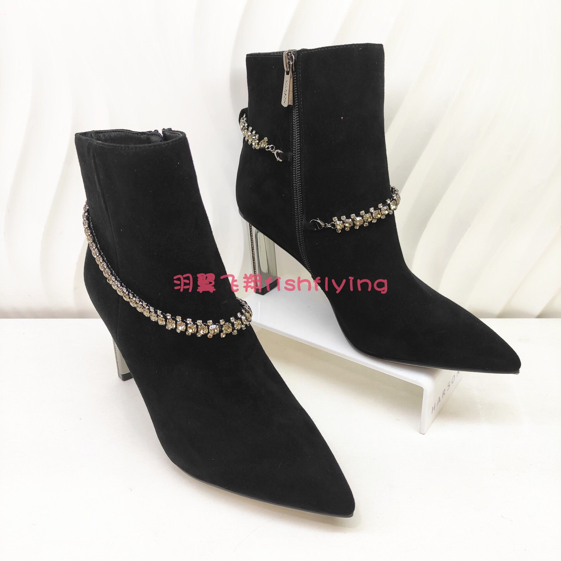 哈森HARSON女鞋专柜正品2021冬新款高跟尖头水钻女短靴子HA17111