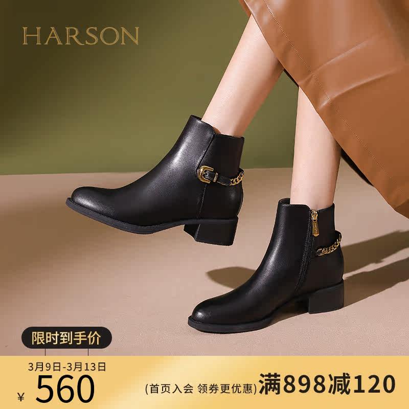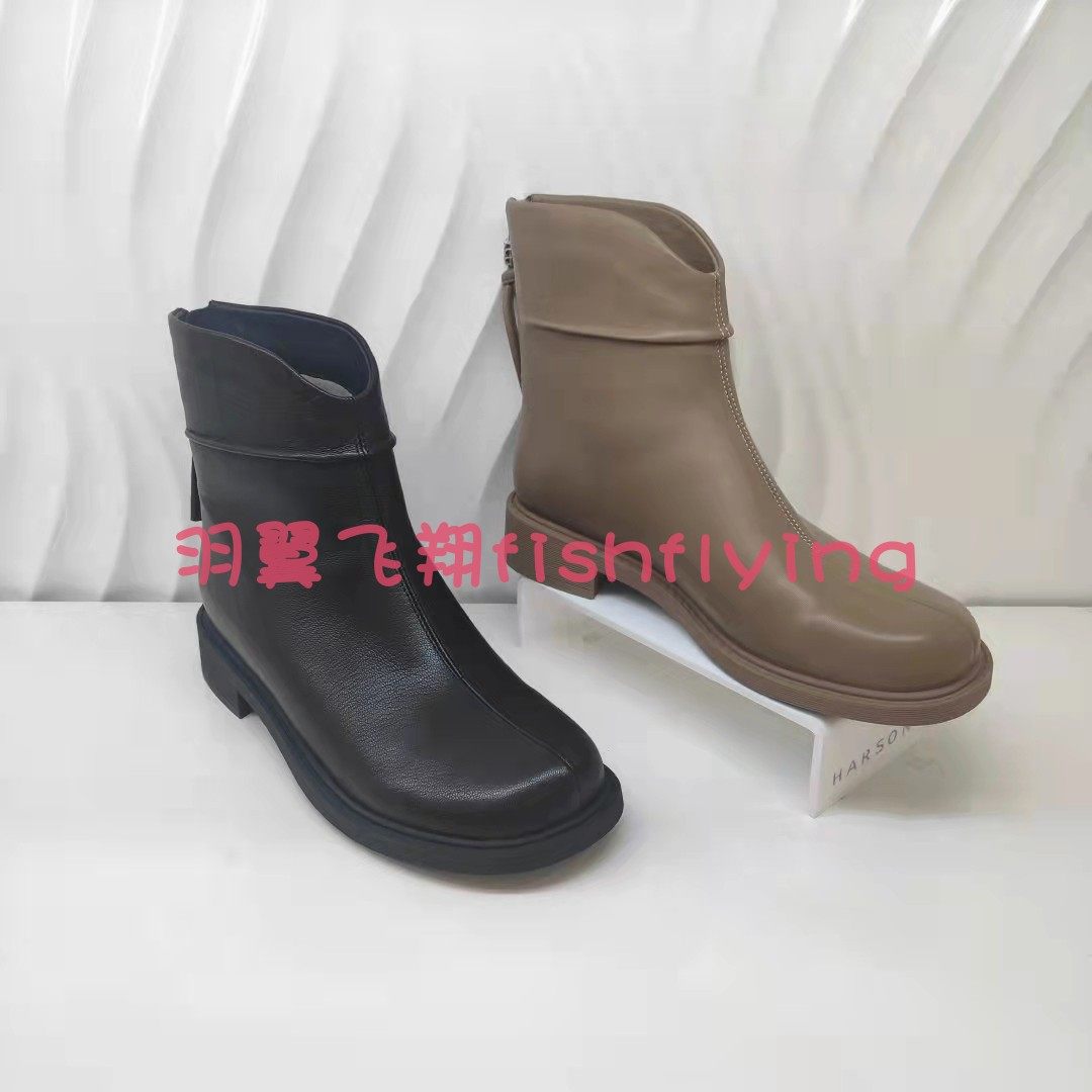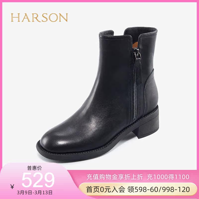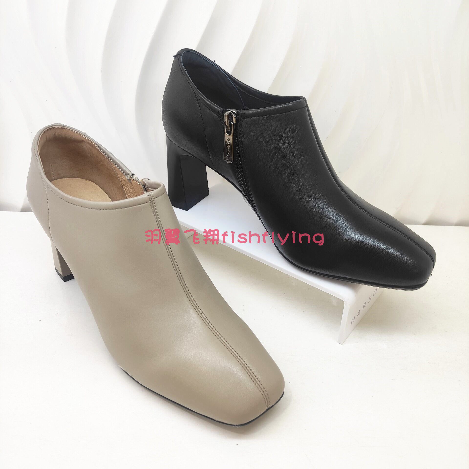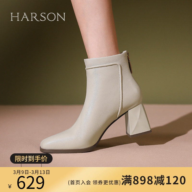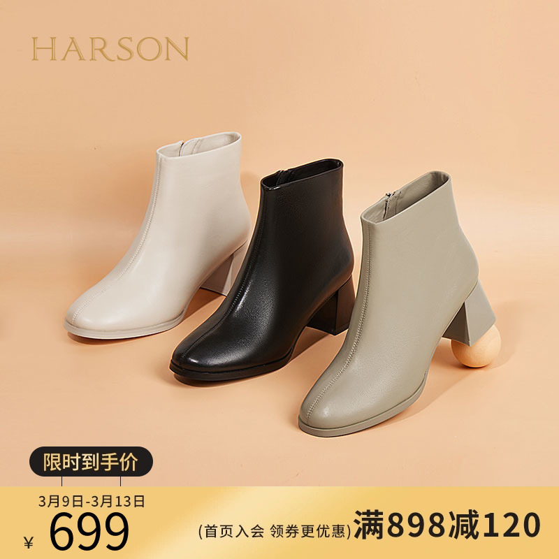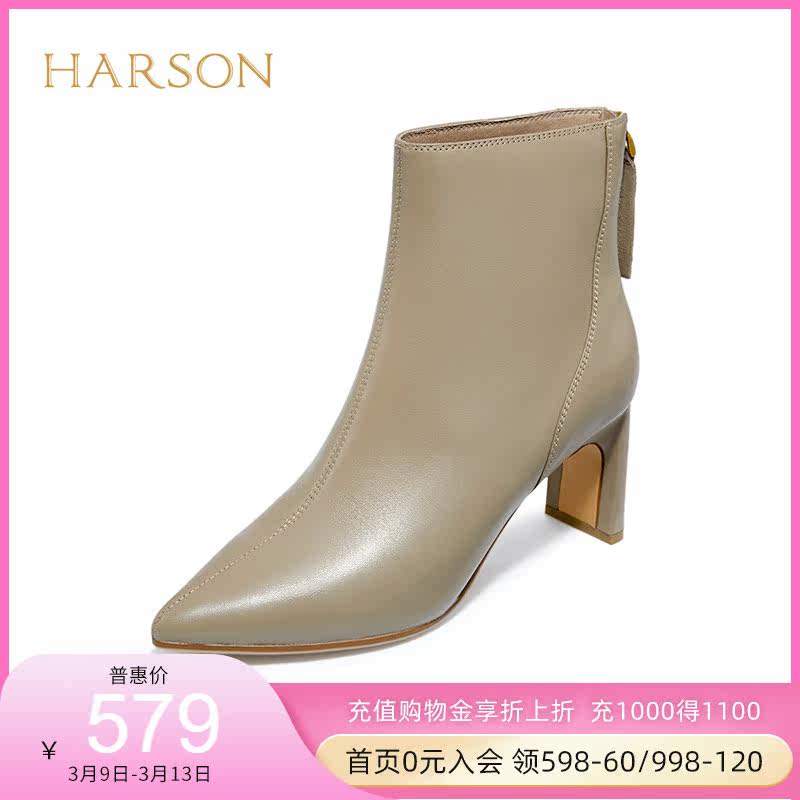 HARSON哈森女鞋专柜正品2021冬新款粗跟后拉链女短筒靴子HA17192