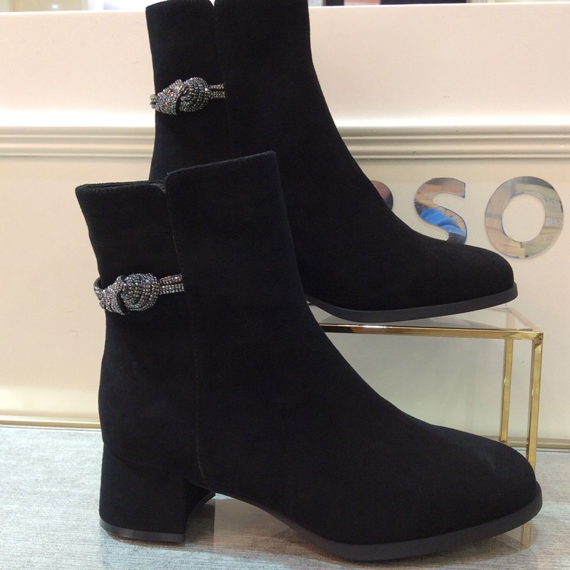 卡迪娜秋冬欧美方头高跟粗跟短靴女时装靴短靴子KLA01536