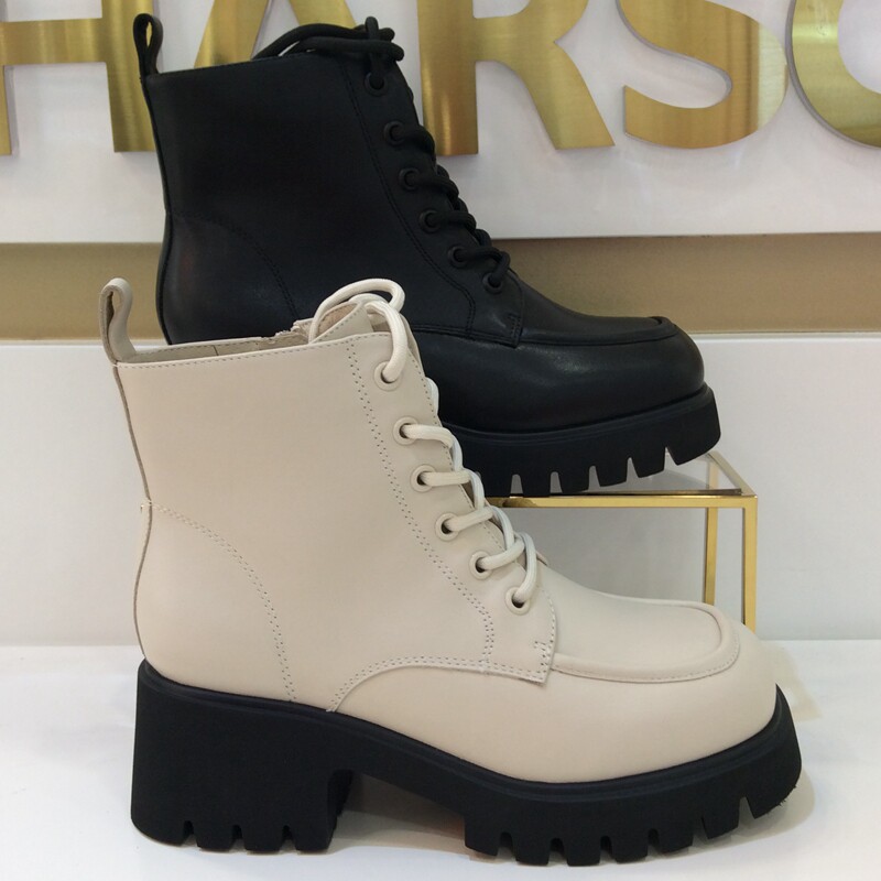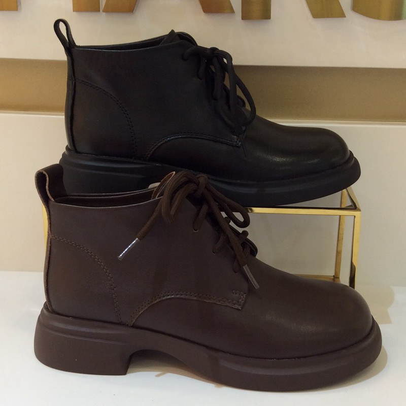 哈森秋冬马丁靴新款英伦风牛皮系带百搭棉鞋女短筒靴子HA07123