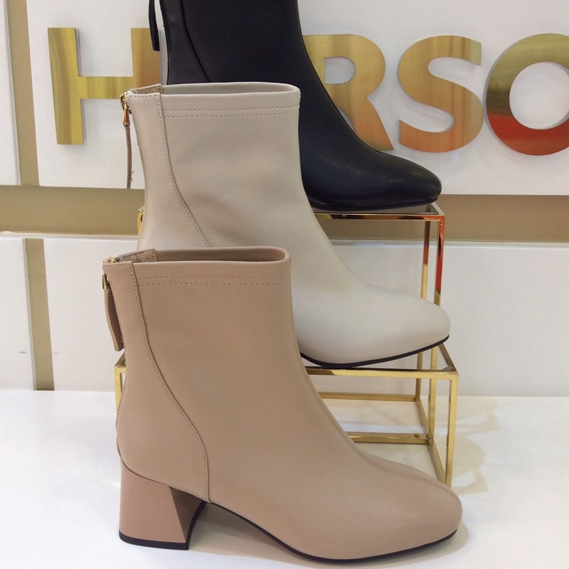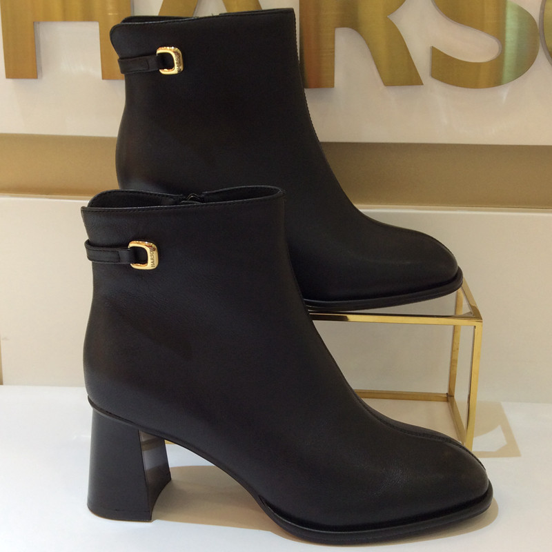 哈森2023冬季新款方头粗跟短筒靴子时尚通勤时装靴短靴HWA230110