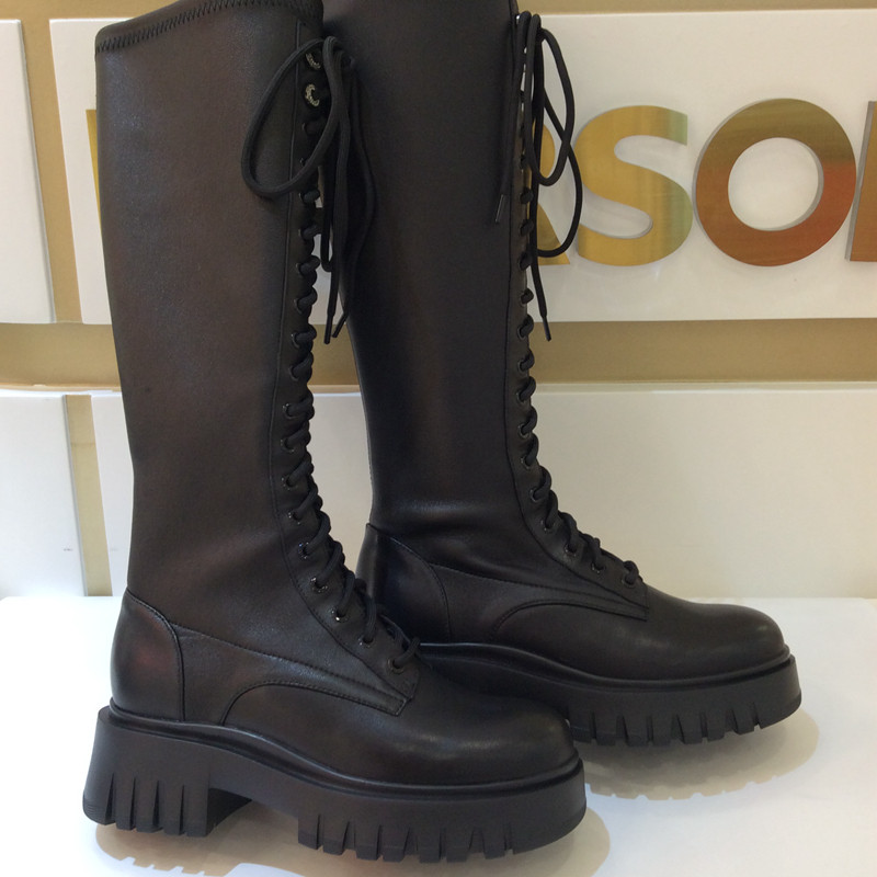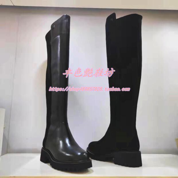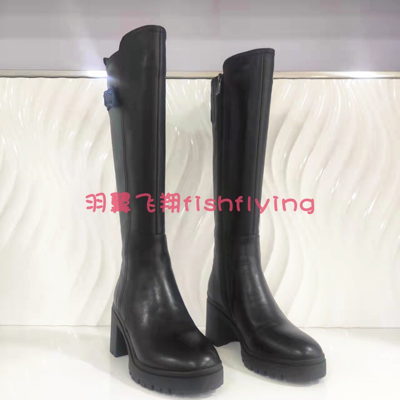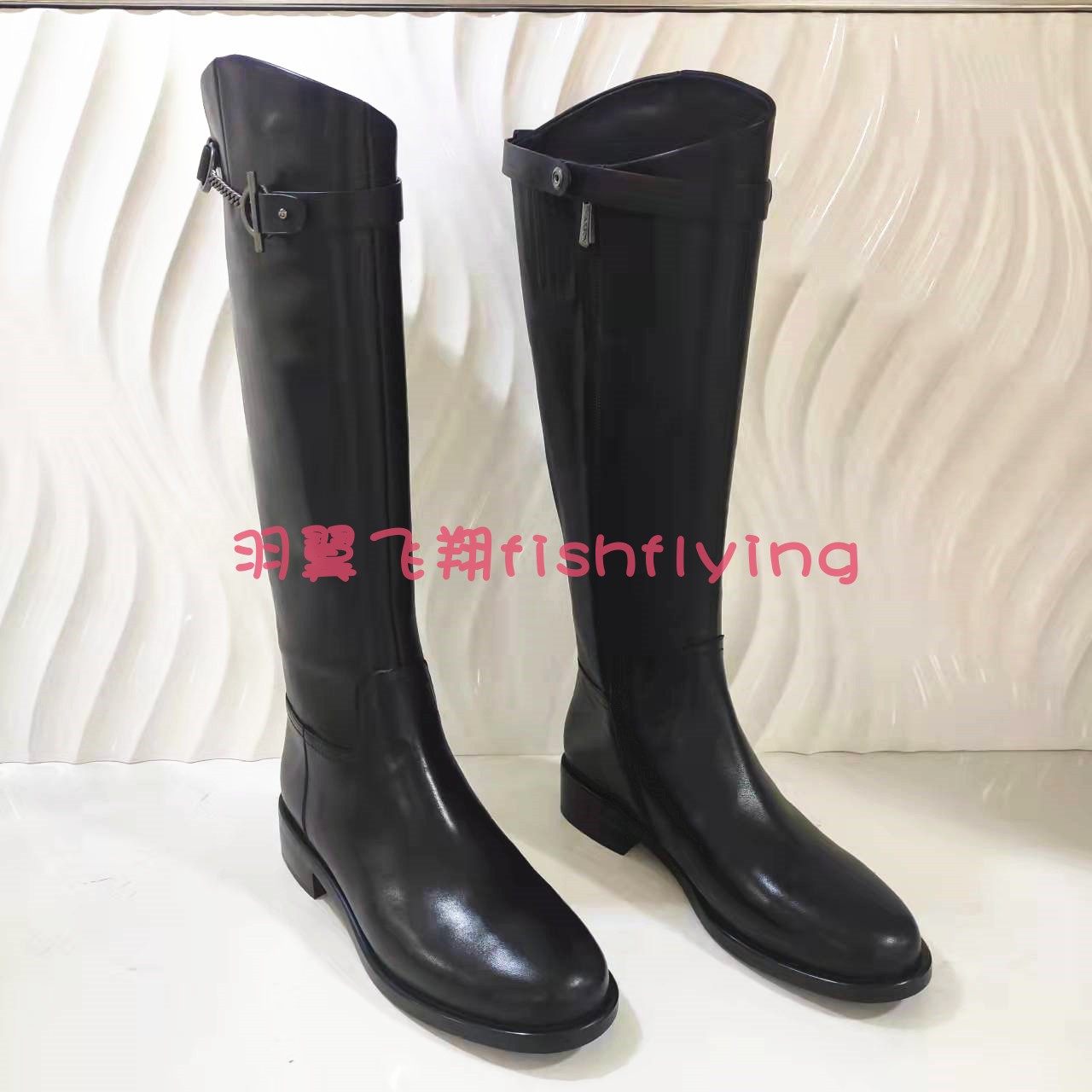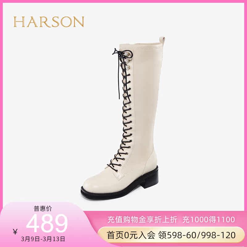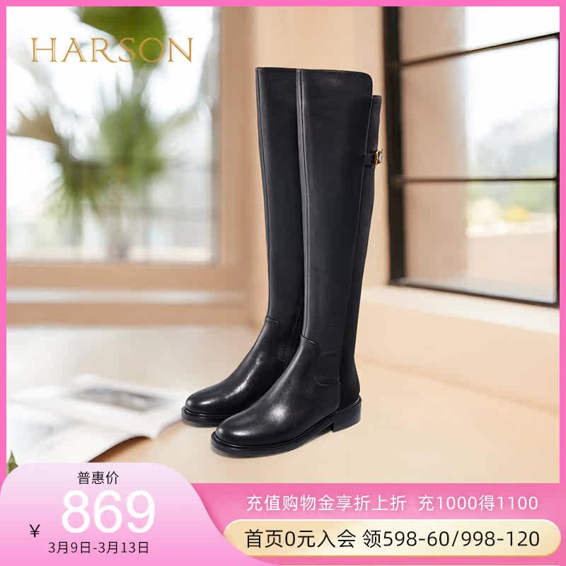 哈森女靴HARSON2021秋冬粗高跟厚底皮带扣骑士靴高筒靴子HA10802