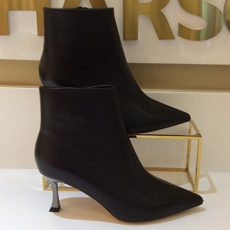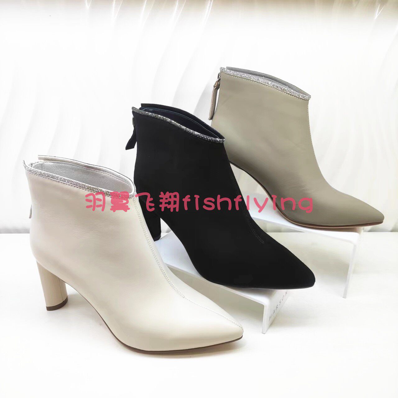 哈森2020秋冬新款短靴女细高跟尖头后拉链百搭女通勤靴子 HA06028
