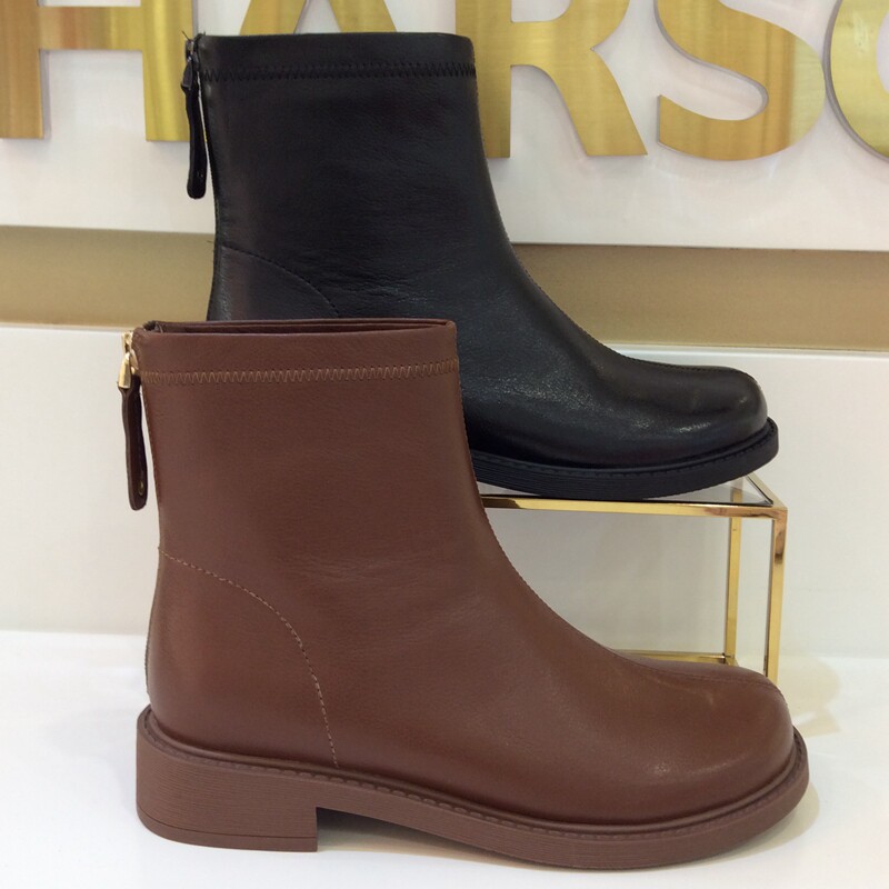 哈森2021秋冬新款女短靴百搭时尚后拉链中跟圆头休闲靴子 HA17173
