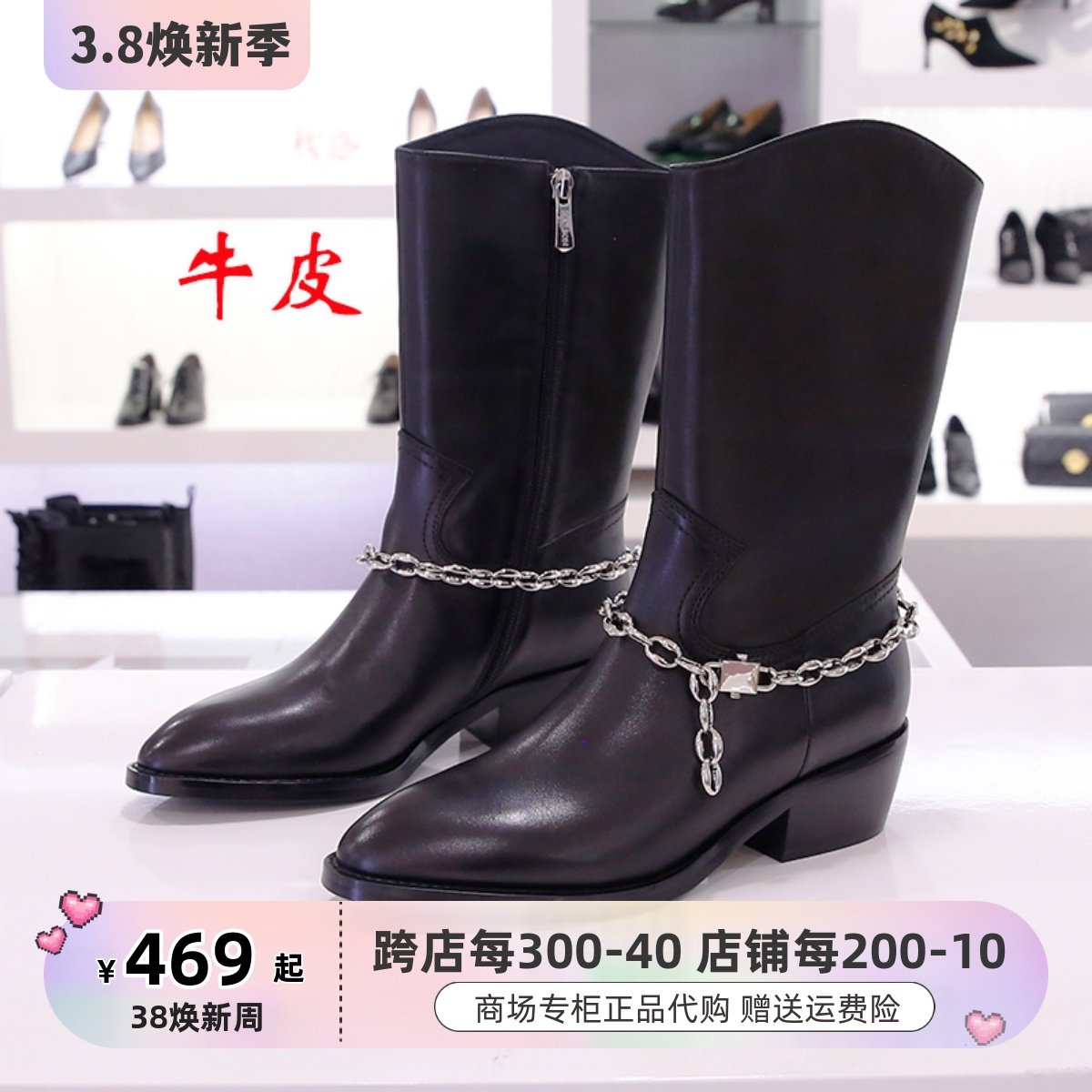 【门店直发】哈森2023冬季新款中筒靴子复古无界战靴女靴HA237118