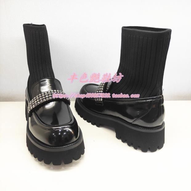 哈森HARSON专柜正品2022冬新款厚底水钻40码女短靴袜靴子HA228101