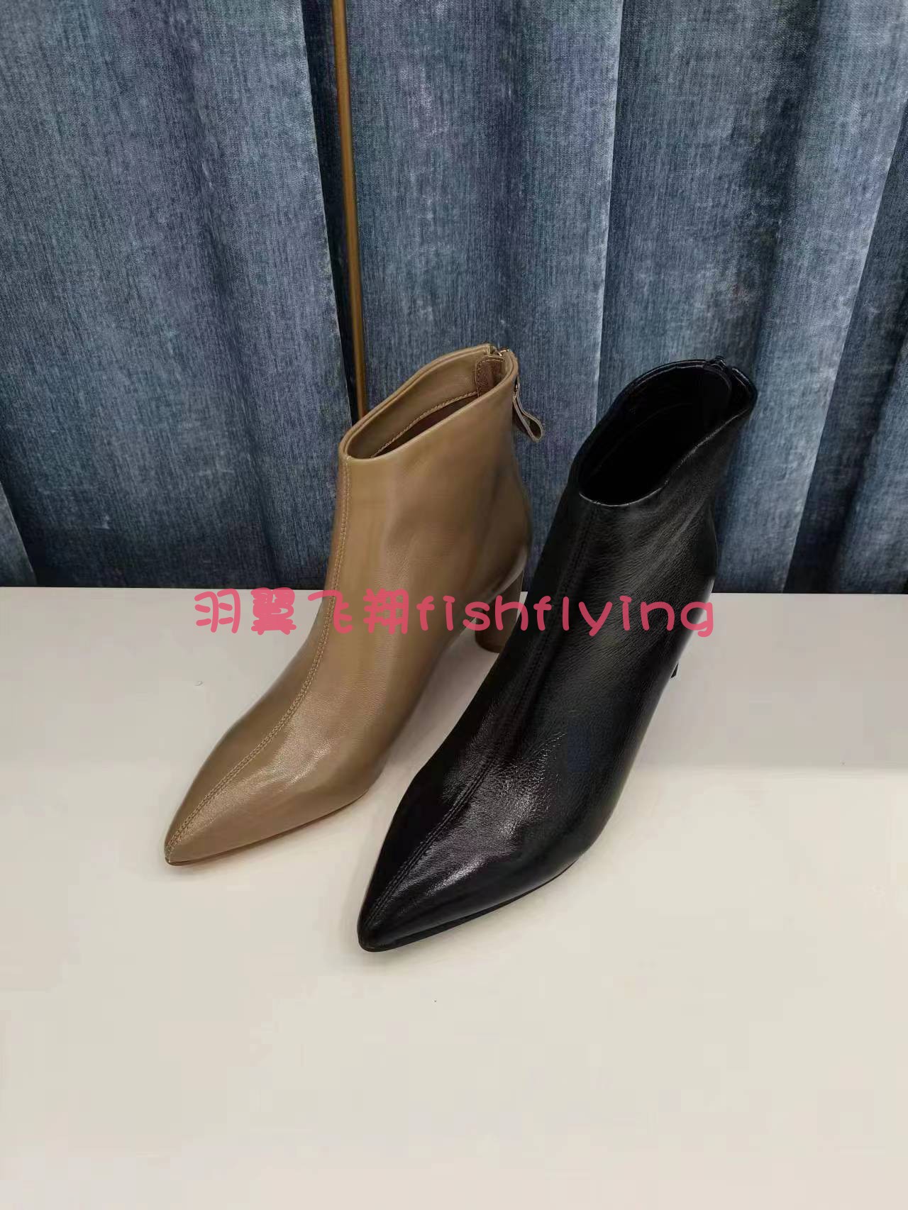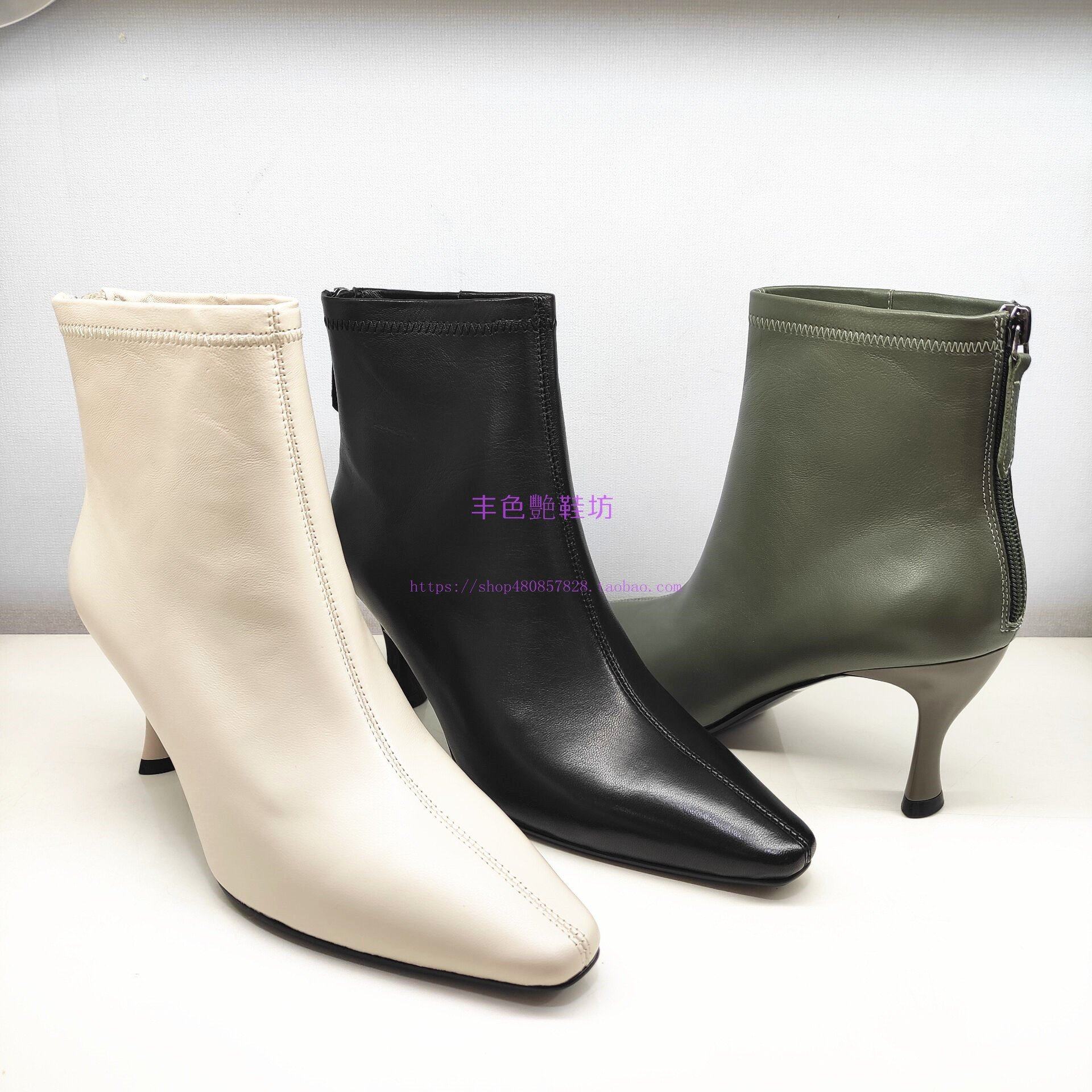哈森短靴女秋季新款单靴子 软面羊皮舒适粗跟瘦瘦靴HWA230108
