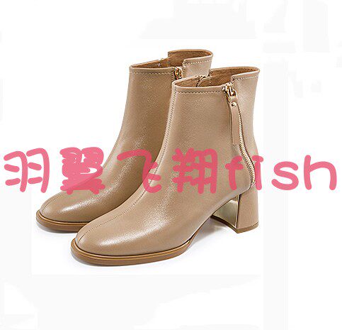 哈森秋冬女靴子粗高跟方头后拉链ins百搭时尚短靴HA16609