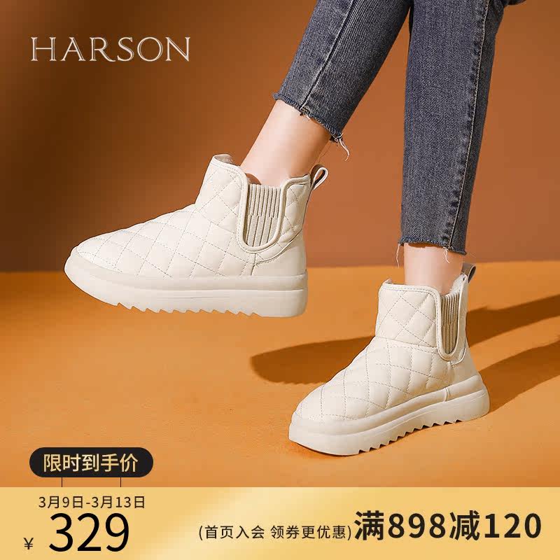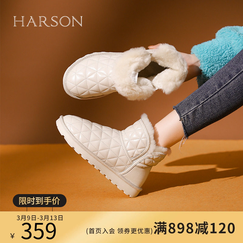 断码特惠哈森HARSON正品冬季保暖羊毛女短筒防滑雪地靴子HA17193