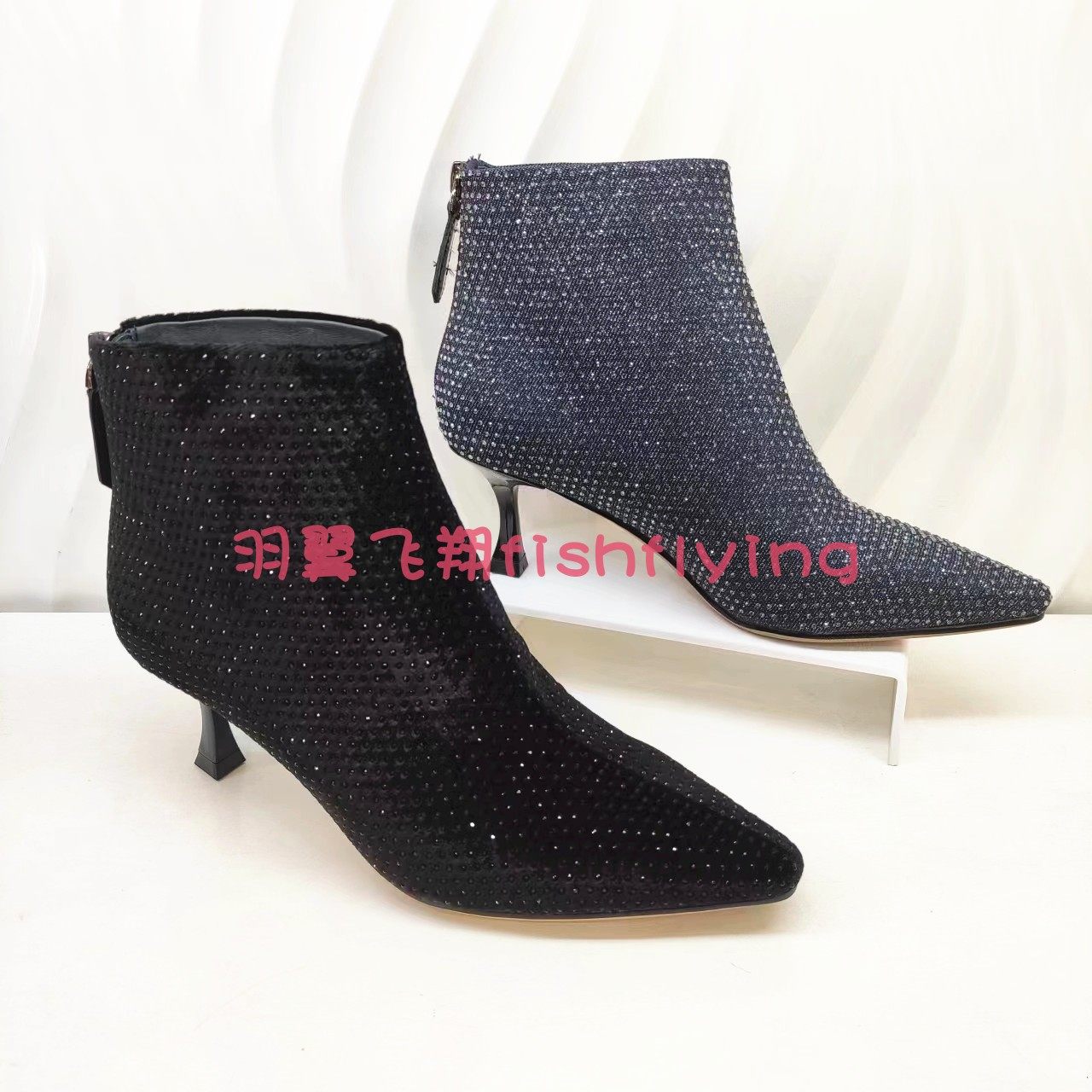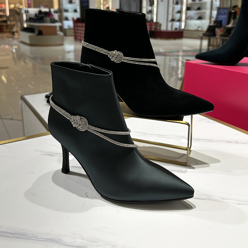 哈森HARSON专柜正品2022冬新款高跟尖头时装水钻女短靴子HA227138