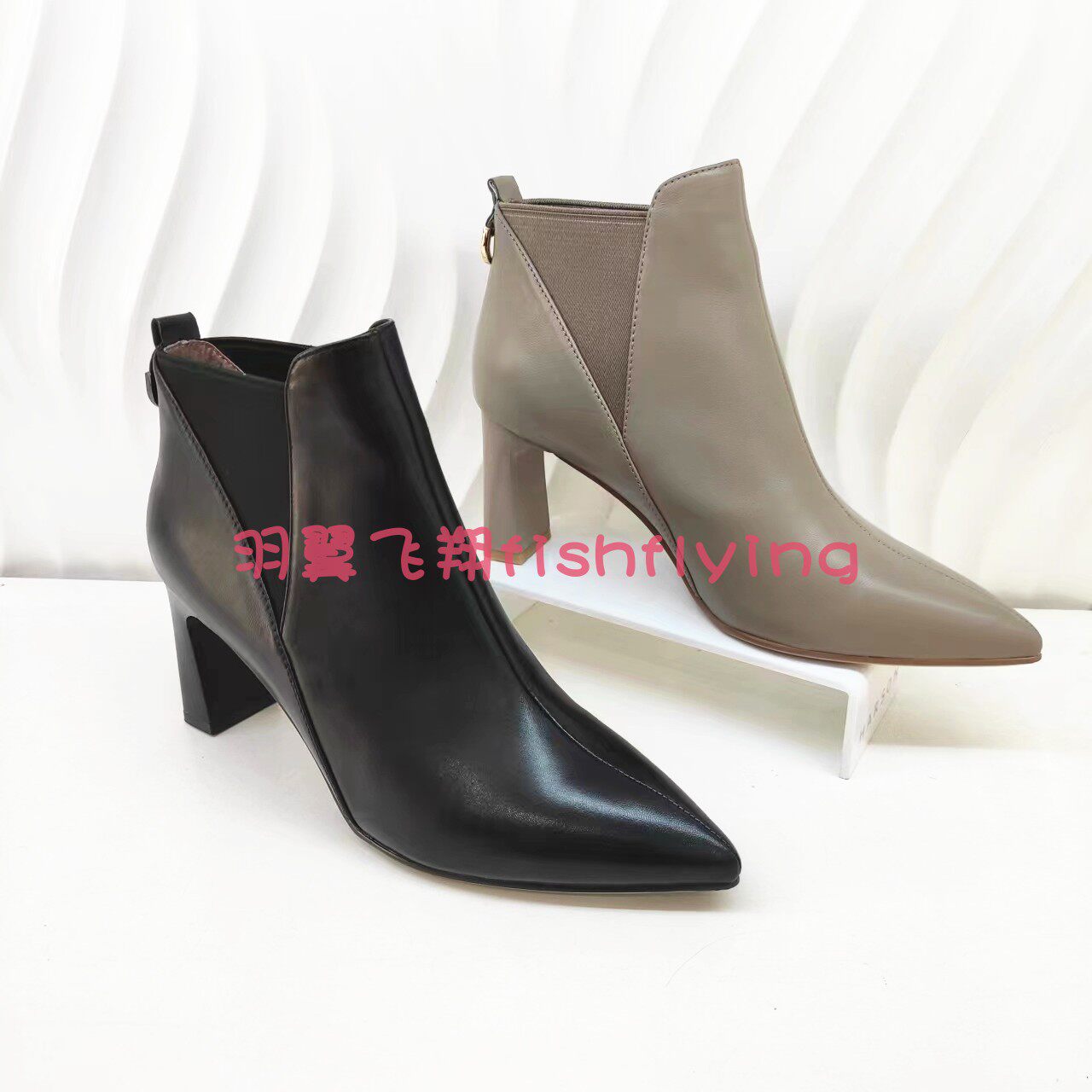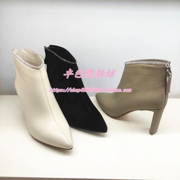 哈森专柜正品2021秋冬新款短靴女高跟尖头后拉链百搭靴子 HA17109