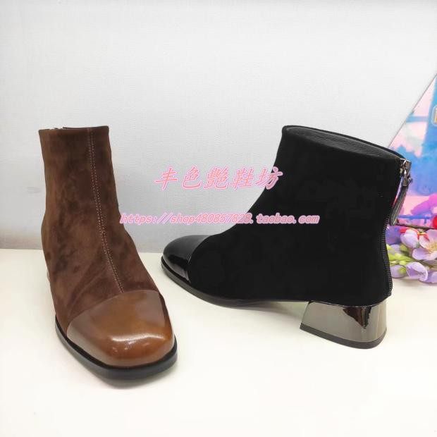 HARSON哈森专柜正品2023冬新款粗跟拼接时装女短靴冬靴子HA236511