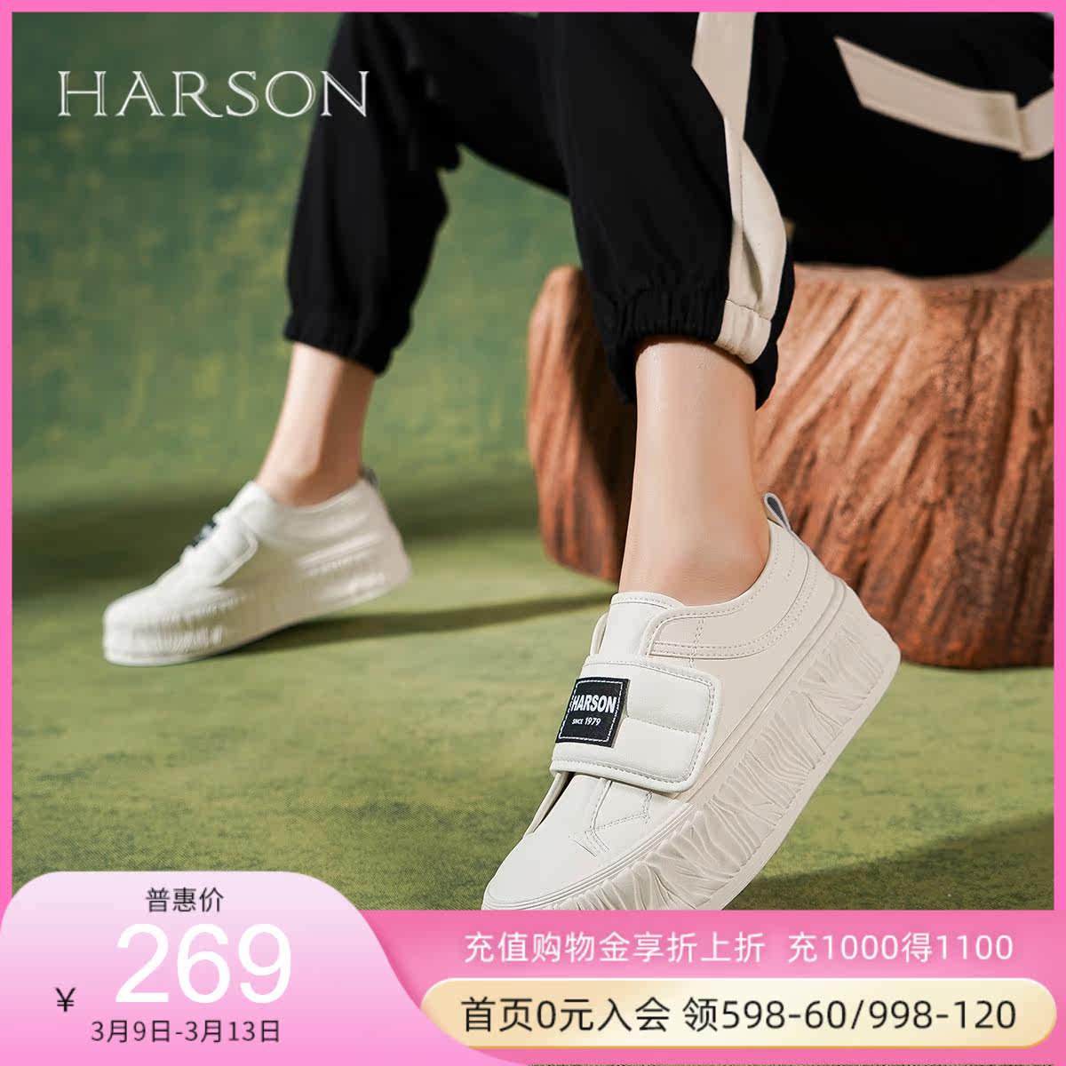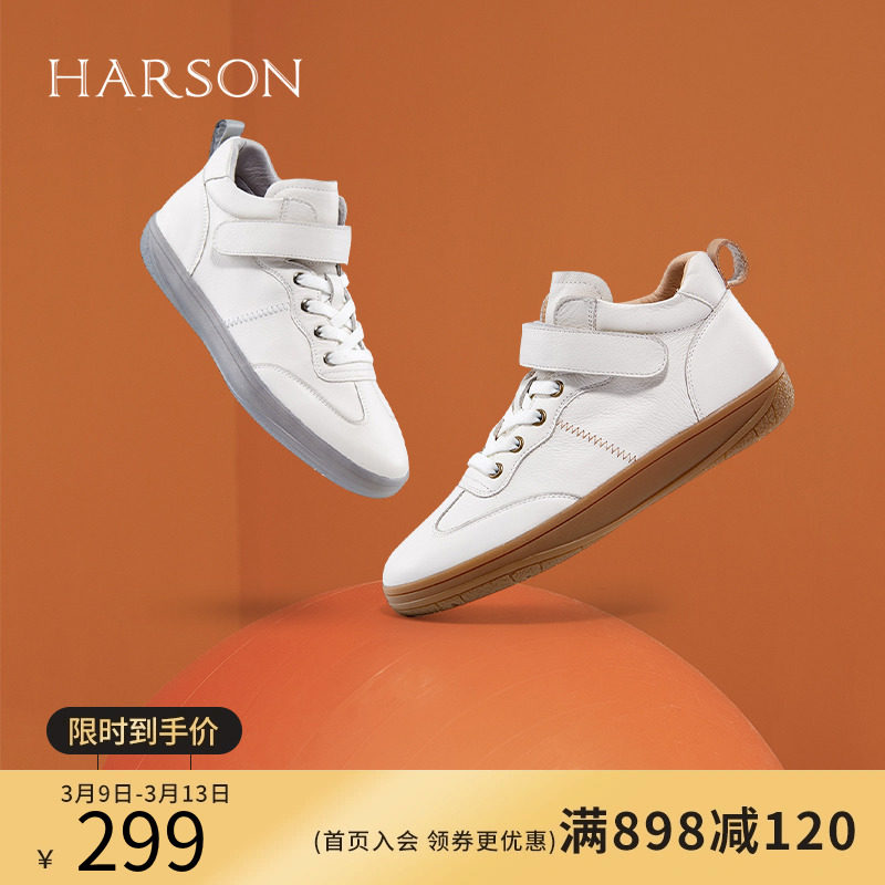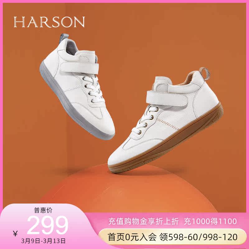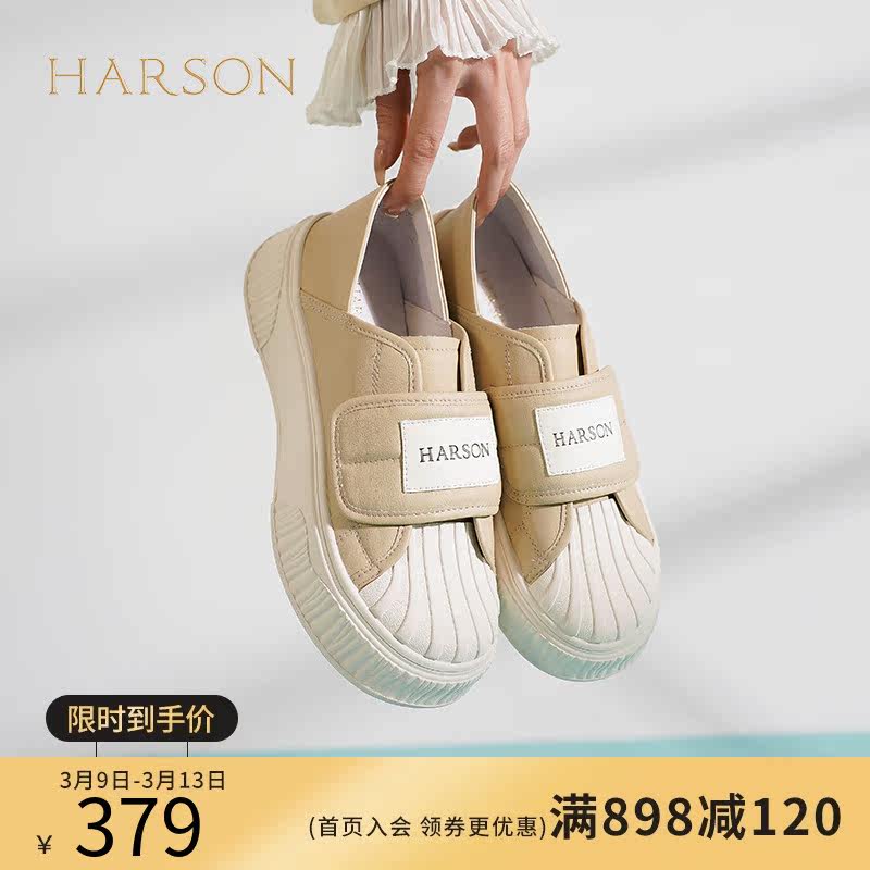 Harson/哈森厚底小白鞋女2023春季新款百搭魔术贴休闲鞋HWC230126
