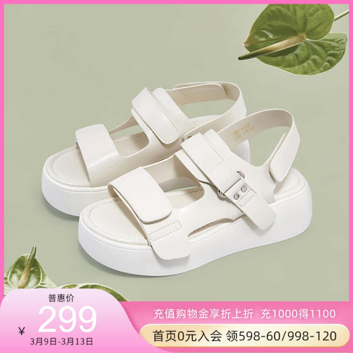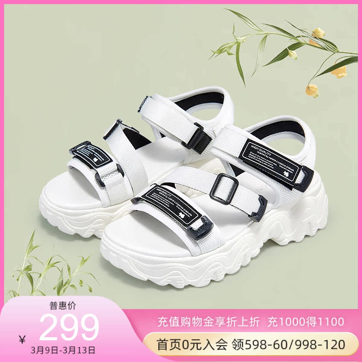 哈森女鞋夏季魔术贴厚底凉鞋女ins风运动老爹凉鞋HM19501