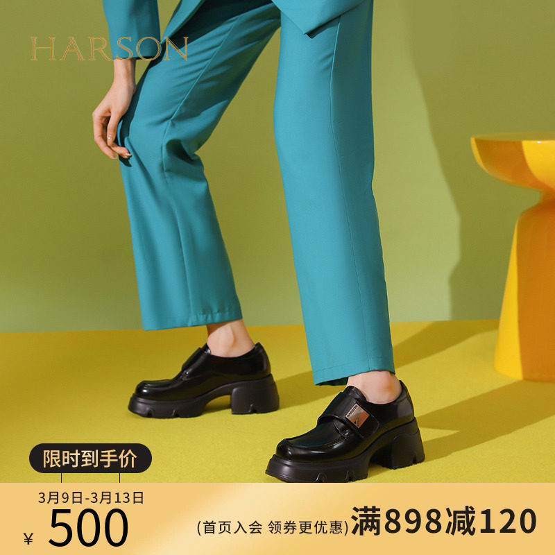 哈森深口单鞋女2024春季新款潮流免系带魔术贴厚底乐福鞋HS242519