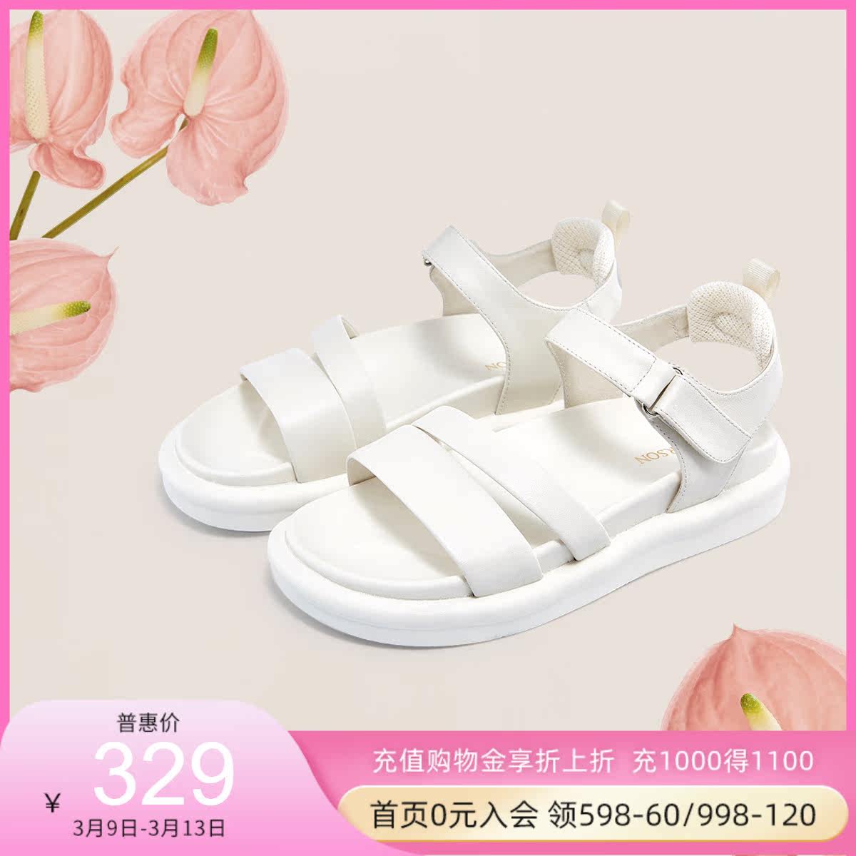 哈森平底凉鞋魔术贴轻便女鞋厚底休闲运动凉鞋HM11906