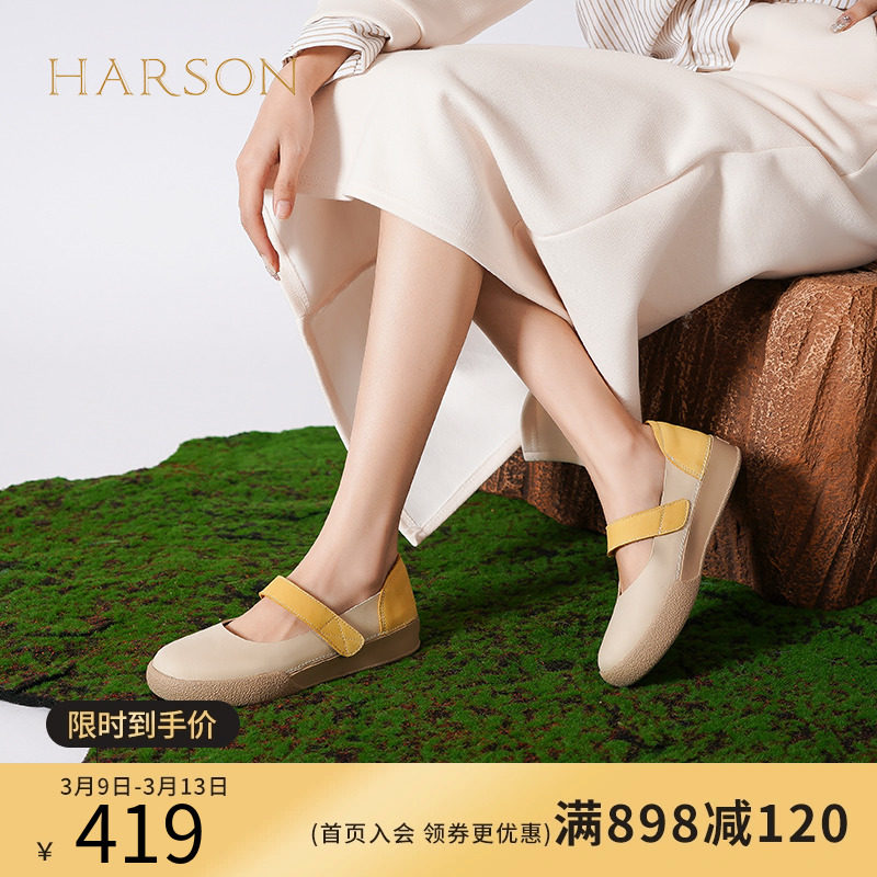 哈森孕妇鞋春秋新款软底魔术贴女鞋 一脚蹬女单鞋平底鞋HWS230221