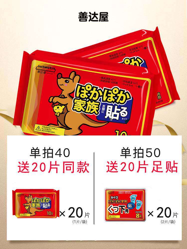 包邮善达屋煖宝宝暖贴一贴热发热保腰背腿贴袋鼠暖身贴暖宝宝贴