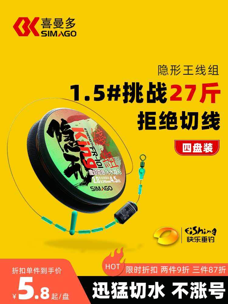 喜曼多线组主线成品鱼线鱼钩套装全套正品绑好钓鱼黑坑台钓高端