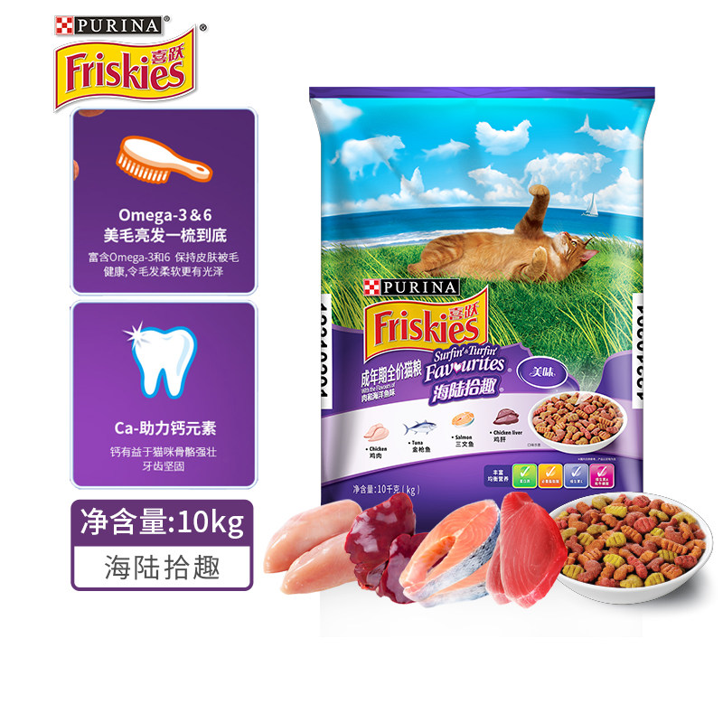 喜跃(Friskies)成猫猫粮10kg海鲜海陆幼猫室内拾趣全阶段猫干粮