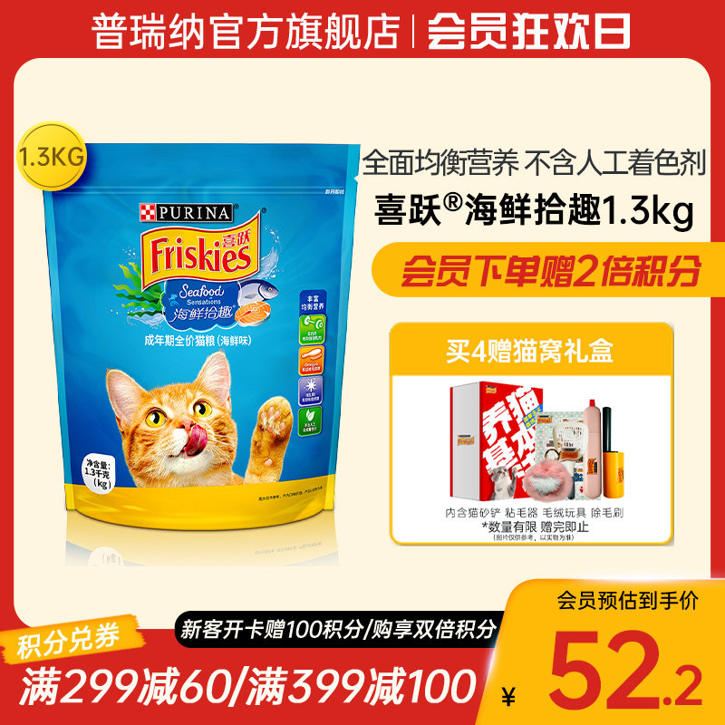 喜跃喜悦海鲜海陆拾趣猫粮1.3kg室内拾趣1.4kg全价成年猫粮去毛球