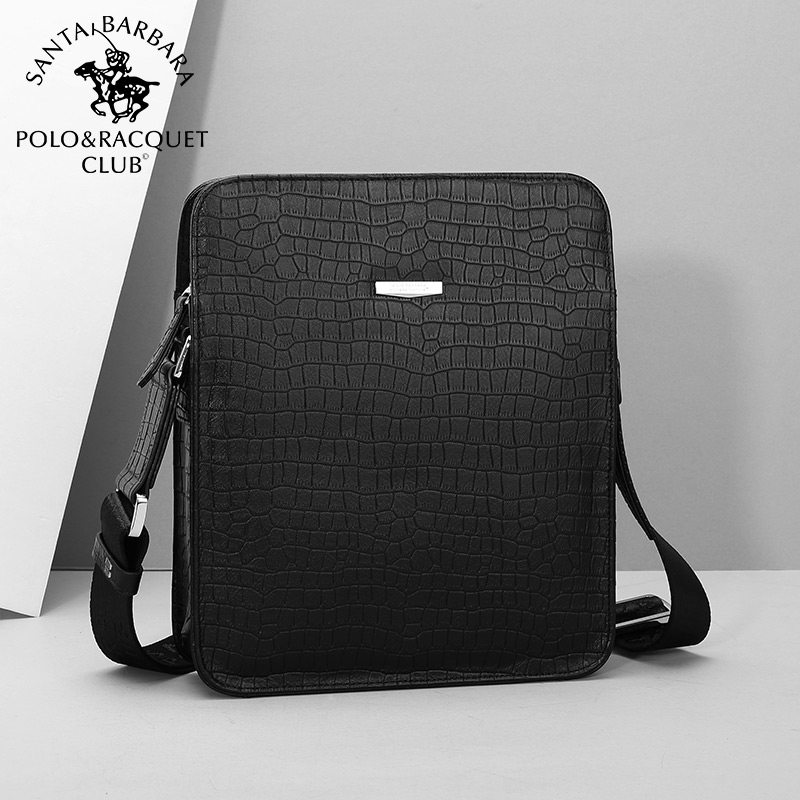 品牌正品圣大保罗男包斜挎包2024新款男士背包休闲单肩包横款皮包