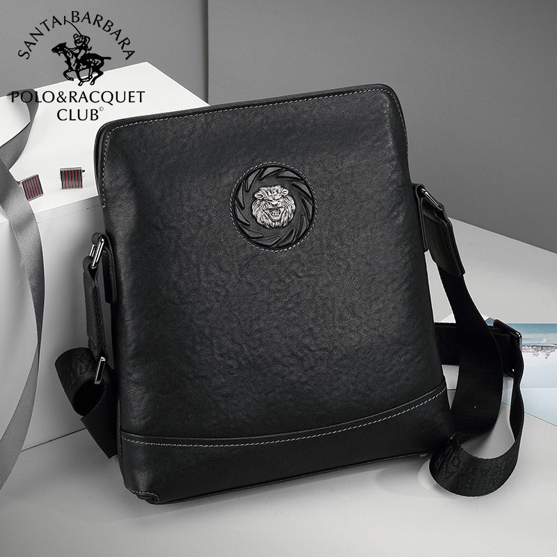 圣大保罗单肩包男真皮休闲商务斜挎包头层牛皮竖款皮包男士背包