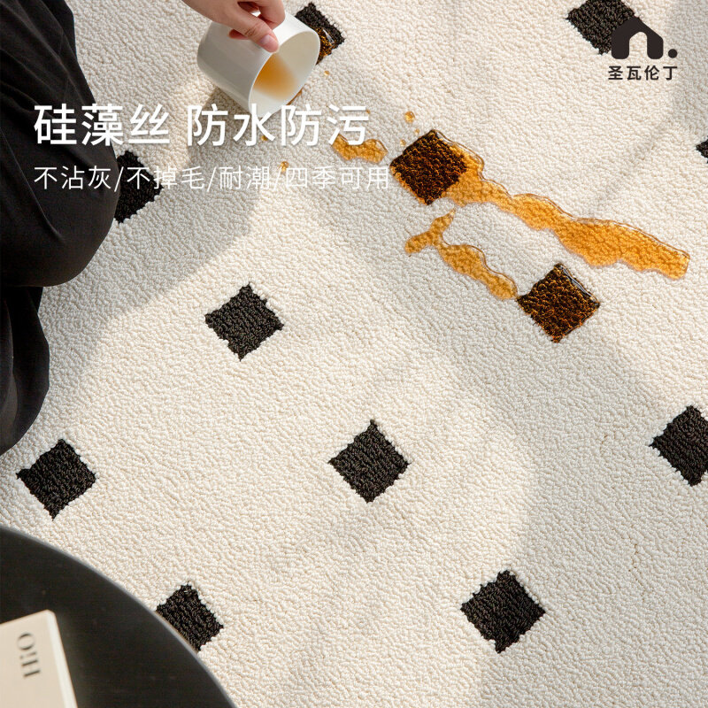 圣瓦伦丁客厅地毯防水防污极简硅藻丝卧室房间复古轻奢高级感地毯