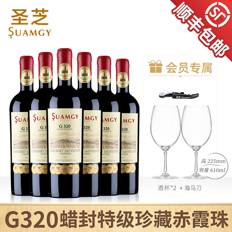 圣芝G320蜡封特级珍藏赤霞珠红酒进口官方正品葡萄酒礼盒干红整箱