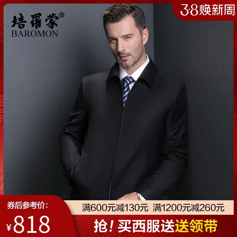 BAROMON/培罗蒙中年男士短款行政夹克衫藏青色外套翻领羊毛夹克